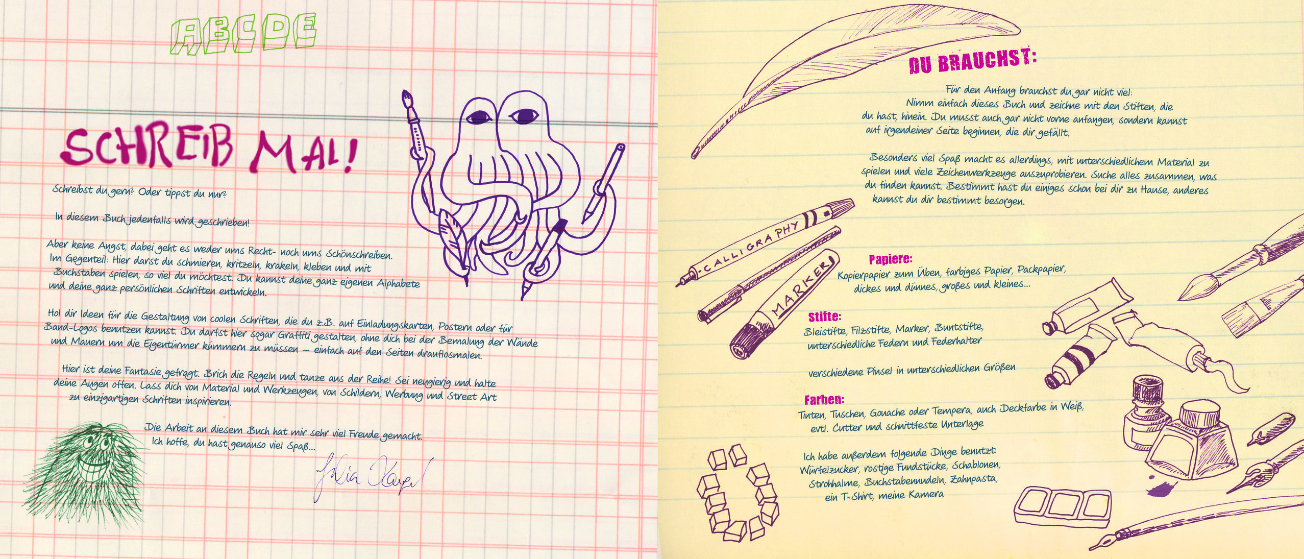 Das Vergnügen steht hier ganz im Vordergrund. Nicht auf Linien sauber schreiben, sondern der Fantasie bei Buchstaben und Zahlen freien Lauf lassen. Bei Schriftmalereien lustige Ideen entwickeln und verschnörkelte, coole oder verrückte Schriften ausprobieren. Von romantisch-verspielt bis bunt und schräg. Graffiti, Bubble-Schriften, Kalligrafie - so einfallsreich, wie schon in ihrem Vorgängerbuch »Druck mal«, gibt Julia Kaergel diesmal viele Anregungen, mit Schriften kreativ umzugehen. Schreiben und Malen soll Spaß machen!