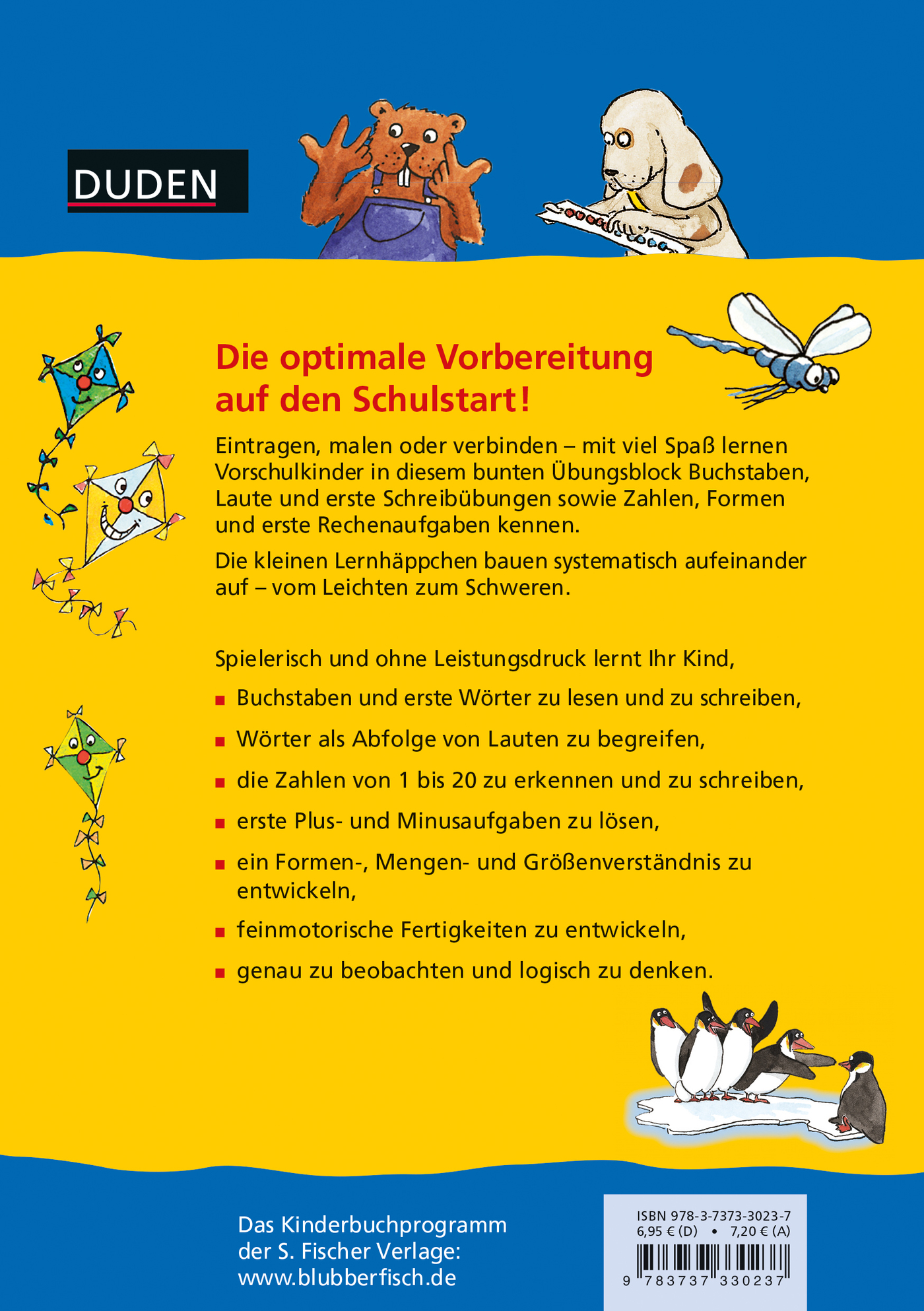 lt;p>Eintragen, malen oder verbinden - mit viel Spaß lernen Vorschulkinder in diesem bunten Übungsblock Buchstaben, Laute und erste Schreibübungen sowie Zahlen, Formen und erste Rechenaufgaben kennen. Eingeteilt in kleine Lernhäppchen bauen die Übungen systematisch aufeinander auf - vom Leichten zum Schweren. Spielerisch und ohne Leistungsdruck lernen Kinder hier, Buchstaben und erste Wörter zu lesen und zu schreiben, Wörter als Abfolge von Lauten zu begreifen, die Zahlen von 1 bis 20 zu erkennen und zu schreiben, erste Plus- und Minusaufgaben zu lösen, ein Formen-, Mengen- und Größenverständnis zu entwickeln, genau zu beobachten und logisch zu denken sowie Aufgaben konzentriert zu bearbeiten.