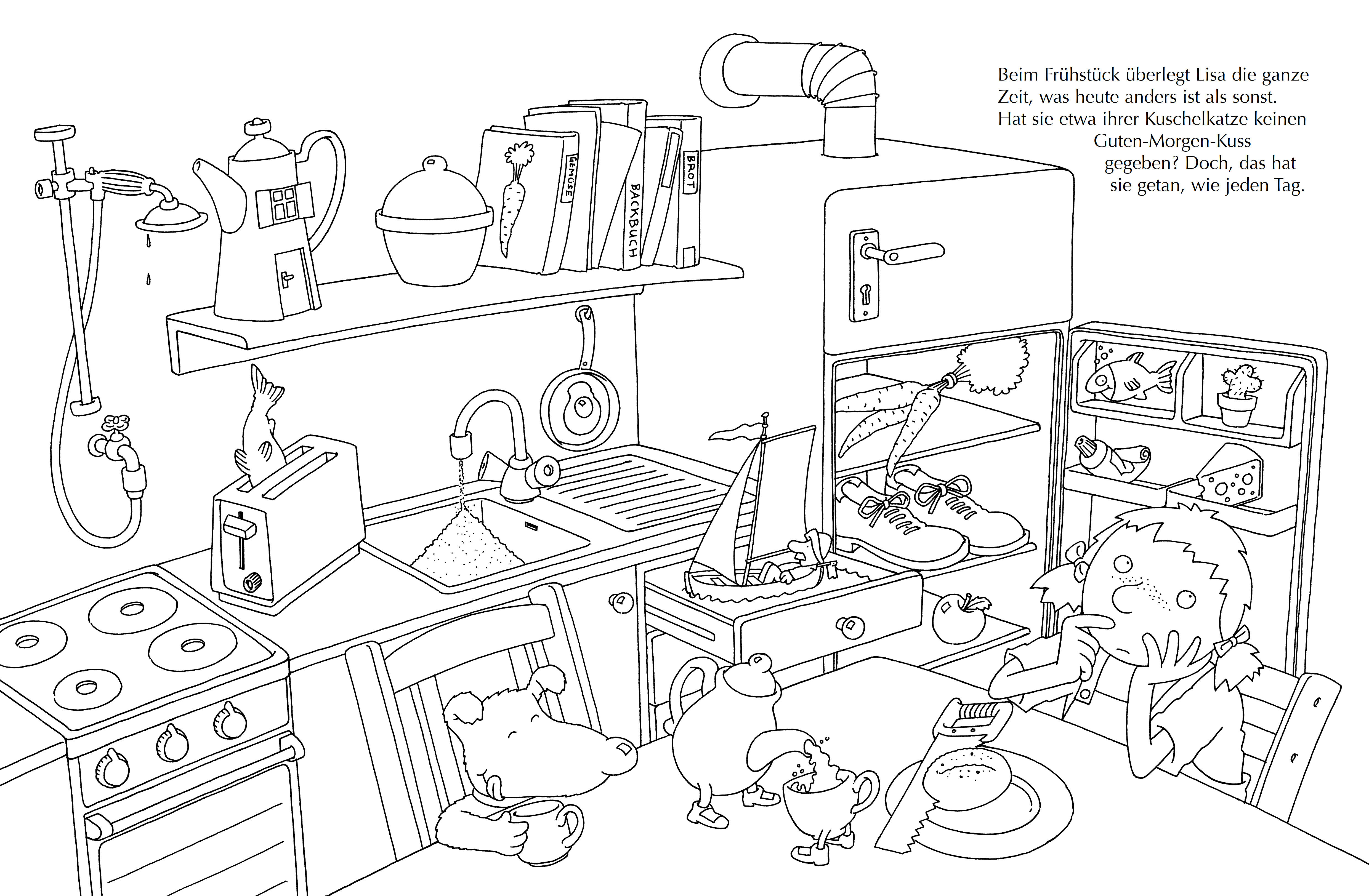 Ausmalen macht Kindern Spaß und Ralf Butschkows beliebte Suchspaß-Wimmelbücher begeistern ebenso. Deshalb gibt es jetzt das große Malbuch zu "Da stimmt doch was nicht!" und "Was stimmt denn da nicht?", in dem Lisa und ihr Hund Popcorn von lauter verrückten Dingen umgeben sind: Da stehen die Schuhe im Kühlschrank, im Einkaufswagen schwappt ein See. Und als Lisa zu ihren Großeltern auf den Bauernhof fährt, entdeckt sie sogar Schafe, die handgestrickte Pullover tragen. Also, irgendetwas stimmt da nicht! Zwei witzige Suchspaß-Geschichten zum Vorlesen, Rätseln und Ausmalen. Mit Schwarz-Weiß-Vorlagen und farbigen Stickern