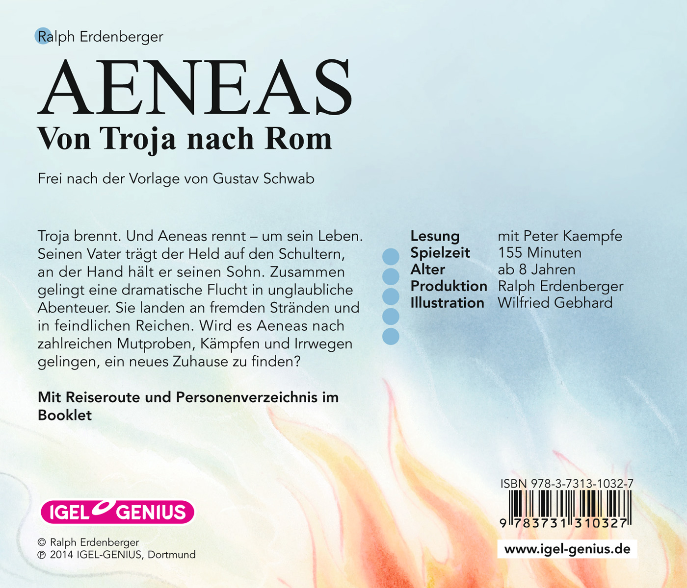 | Schlagworte | Aeneas • Aeneis • griechische Sagen • Hörbuch; Lesung für Kinder/Jugendliche • Hörbuch; Märchen/Sagen • Troja |