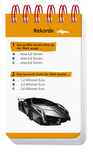 | Schlagworte | Auto; Kindersachbuch/Jugendsachbuch • Fahrzeuge • Quizblock • Quiz f. Kinder/Jugendliche • Rätsel |