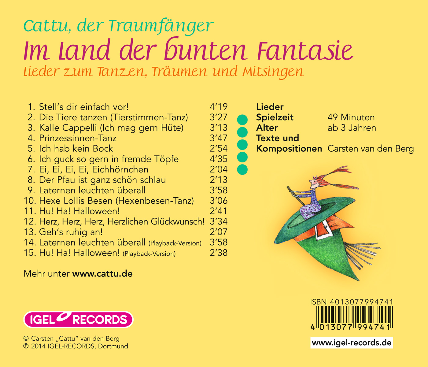 Eine musikalische Phantasiereise. Die Lieder auf dieser CD nehmen Kinder mit auf eine phantastische Reise. Es geht um tanzende Tiere und Prinzessinnen, um Halloween, leuchtende Laternen, eine kleine Hexe und vieles mehr. Mit Playback-Versionen und Liedtexten im Booklet.