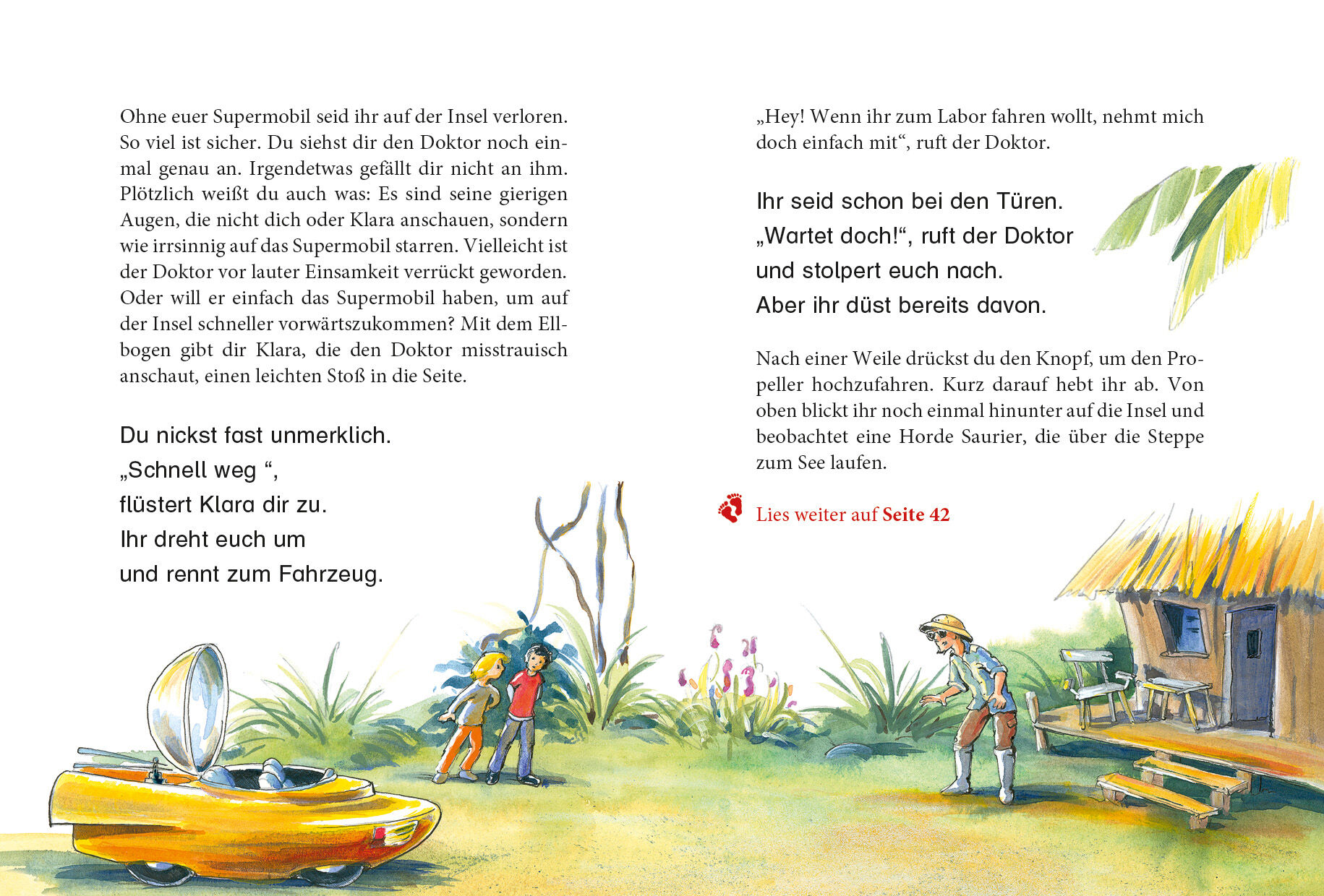 Schon lange haben deine Freundin Klara und du sich auf dieses Abenteuer gefreut: Gemeinsam wollt ihr den Dinopark erkunden. Doch vergesst nicht, nicht jeder Dinosaurier ist so niedlich wie er aussieht ... Jetzt gilt es, einen kühlen Kopf zu bewahren! Denn auf dieser Expedition bist DU der Held, der von Seite zu Seite aufs Neue entscheidet, was als nächstes passiert - und die verschiedenen Dinosaurier hautnah erlebt!Wenn das Lesen für Leseanfänger noch mühsam ist, heißt es in vielen Familien: »Lass uns gemeinsam lesen. Erst ich ein Stück, dann du. Wir wechseln uns ab.« Deswegen ist unsere beliebte Erstleser-Reihe »Erst ich ein Stück, dann du« speziell für das gemeinsame Lesen konzipiert:* Leseabschnitte für die erfahrenen Vorleser und die Leseanfänger wechseln sich ab