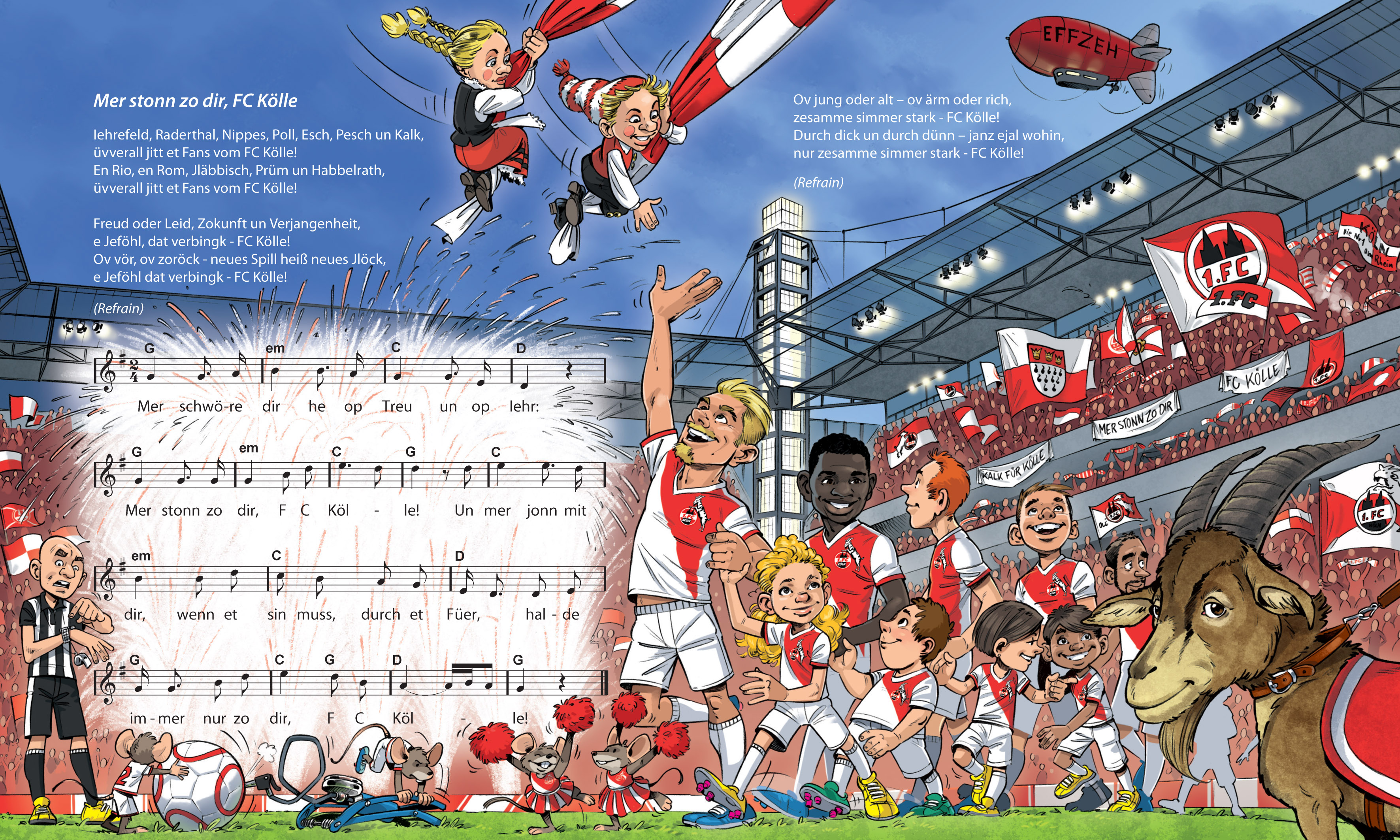 Dem robusten Papp-Bilderbuch liegt die Musik-CD mit den Originalaufnahmen im Digipack bei. Offizielles Lizenzprodukt des 1. FC Köln.
