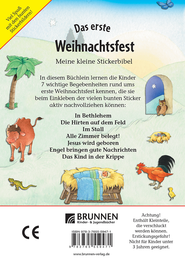 Sieben biblische Geschichten für Kinder ab 3 Jahren und eine Doppelseite mit vielen Stickern zum Vertiefen der biblischen Erzählungen. Ein großer Spaß für kleines Geld.