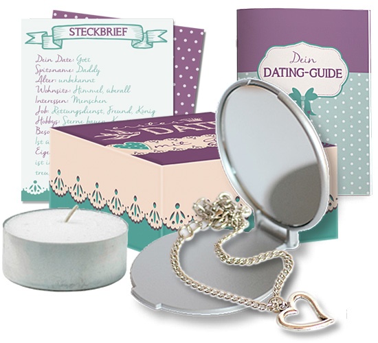 Die hübsch aufgemachte Date-Box ermöglicht Mädchen eine erste Berührung mit dem christlichen Glauben. Mit ihrem Inhalt bietet sie die Möglichkeit, Gott in einem ganz persönlichen Rahmen zu entdecken – nämlich in einem ersten Date mit ihm. Dazu dienen auch die in der Box enthaltenen Utensilien: