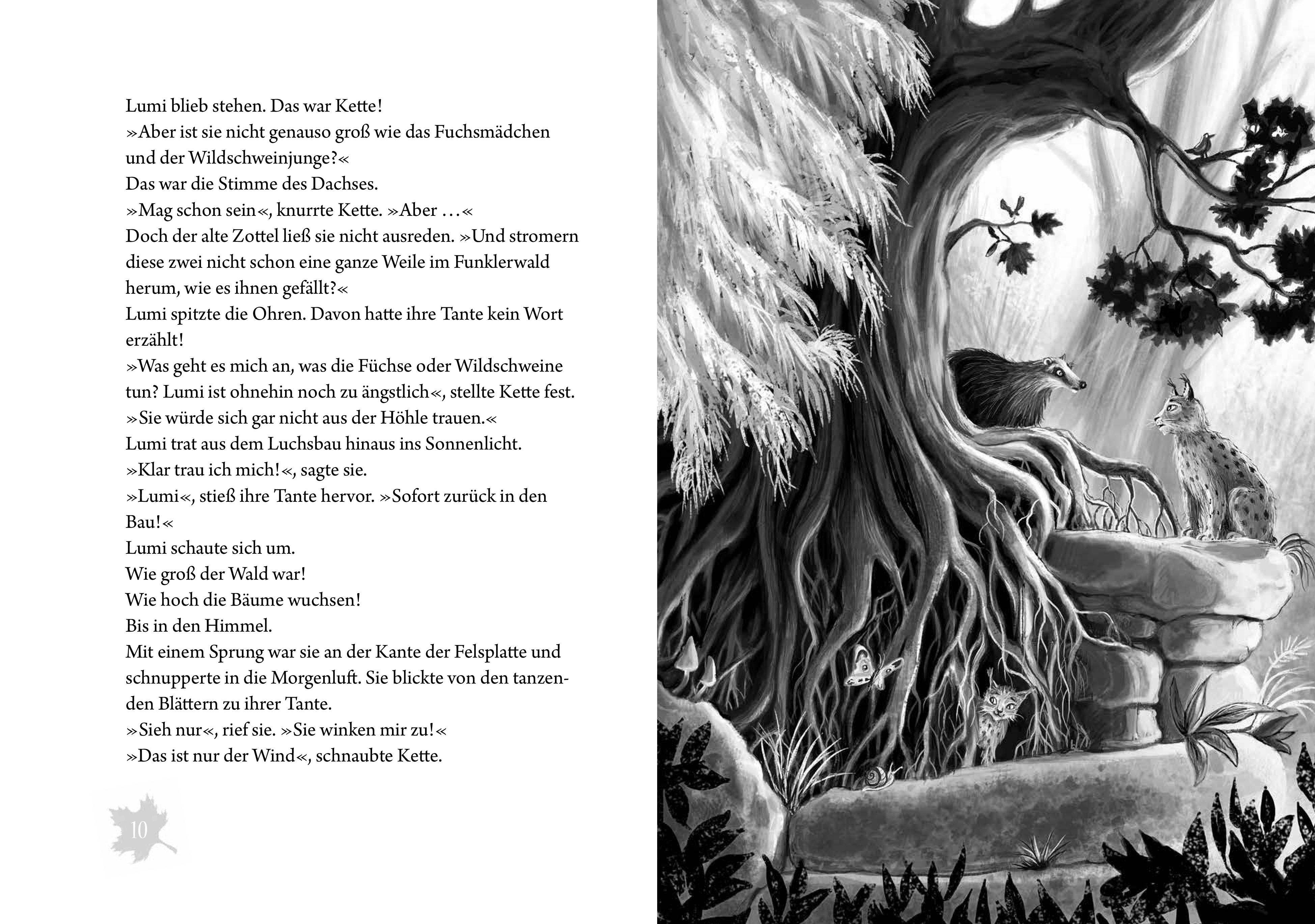 Du kannst alles schaffen, wenn ein Freund dir die Pfote reicht! Das Luchsmädchen Lumi lebt schon immer im Funklerwald und kennt jeden Baum und jedes Tier rund um ihren Bau. Der Waschbärenjunge Rus kommt ganz neu in den Wald und sucht dort mit seiner Familie eine Heimat. Als Lumi in eine Felsspalte fällt, hilft Rus ihr aus der Patsche. Aber die anderen Funklerwald-Tiere mögen keine Neulinge. Und sie beschließen: Die Waschbären sollen verschwinden! Lumi und Rus müssen ganz schnell einen Weg finden, damit die Waschbären bleiben dürfen. Und dieser Weg führt sie in die gefährlichsten Regionen des Waldes, zu der weisen Fledermaus Maushardt und dem geheimen Wandelbaum ... Ein zeitgemäßes Gegenstück zu "Der Wind in den Weiden" und anderen Klassikern.