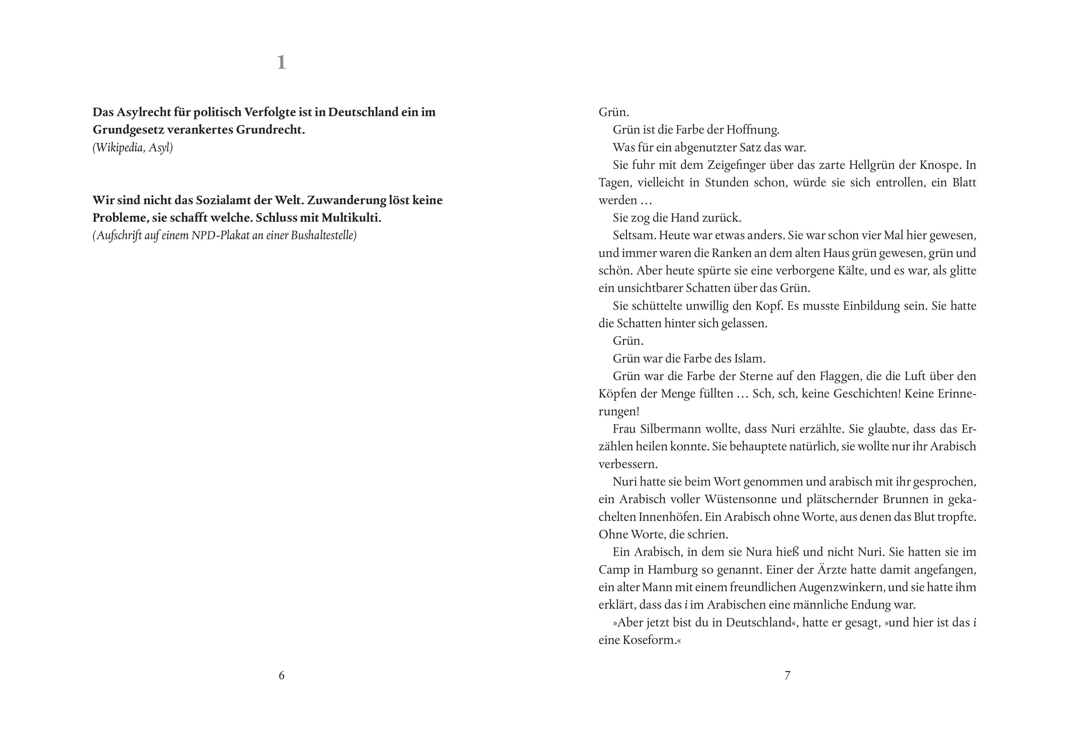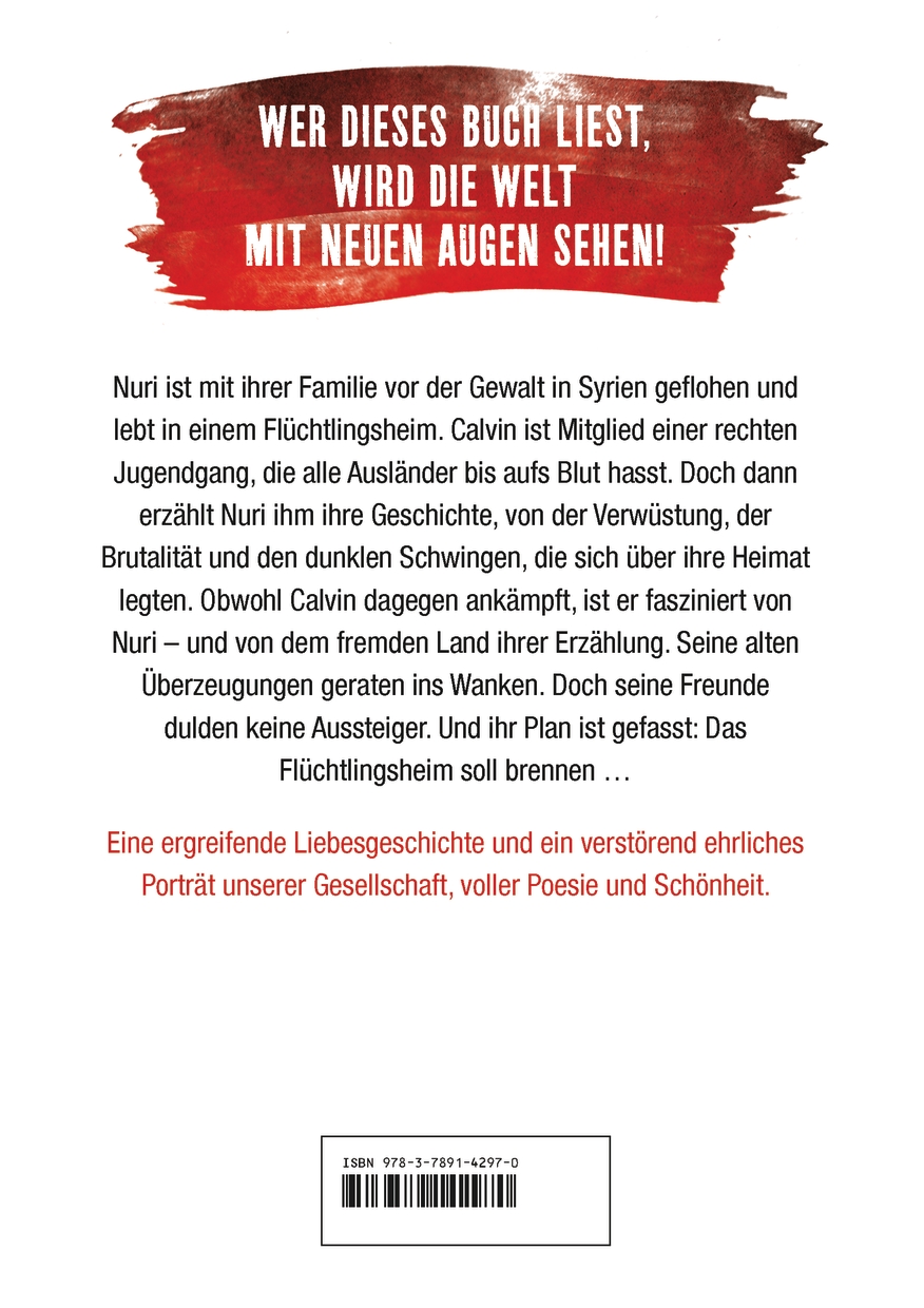 lt;p>Ein Buch, das die Augen öffnet: verstörend, poetisch, engagiert. Nuri kommt aus Syrien und lebt im Asylbewerberheim. Calvin wohnt nur wenige Häuser weiter und ist Mitglied einer rechten Jugendgang. Als sie sich kennenlernen, erzählt Nuri ihm von ihrem Heimatdorf am Rand der Wüste und von dessen Schönheit. Doch dann kamen die Schwingen des Bösen und legten sich über das ganze Land. Je mehr Calvin über das Mädchen mit den dunklen Augen erfährt, desto mehr verliebt er sich in sie. Calvin möchte seine Gang verlassen - doch so einfach entkommt er seinen alten Freunden nicht. Eine ergreifende Liebesgeschichte inmitten sozialer Konflikte, voller Poesie und Schönheit. Ein schmerzhaft ehrliches Gesellschaftsporträt mit einer "Romeo und Julia"-Geschichte eigener Art.