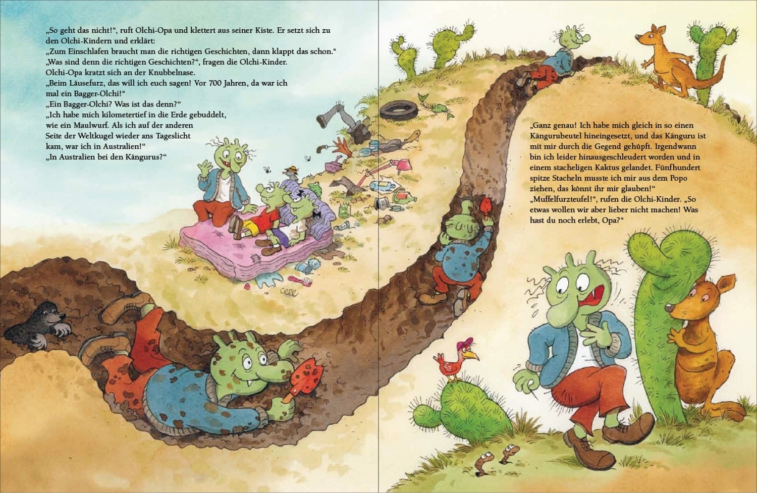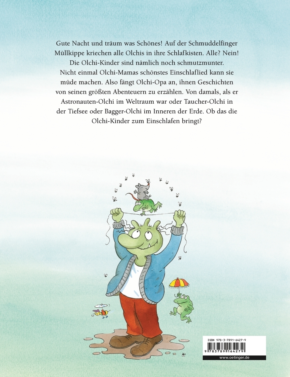 Muffel-furz-niemals-müde! Olchi-Kinder brauchen Abenteuer! Es ist Abend, die Olchi-Familie möchte Ruhe haben, aber die Olchi-Kinder sind putzmunter. Nicht mal Olchi-Mamas Wiegenlied hilft! Da beginnt Olchi-Opa krötiges Olchi-Garn zu spinnen und erzählt von damals, als er Taucher-Olchi in der Tiefsee war, Astronauten-Olchi im Weltraum oder Seefahrer-Olchi auf dem Ozean. Von so vielen tollen Geschichten werden sogar die Olchi-Kinder müde, kuscheln sich auf ihre Matratzen und schlafen ein. Dabei schnarchen sie so laut, dass ihre Eltern sich bald schon wünschen, sie wären wieder wach! Aberwitzige Olchi-Abenteuer zum Mitlachen und Mitfiebern: ein krötig-freches Gutenacht-Buch auf Olchi-Art.