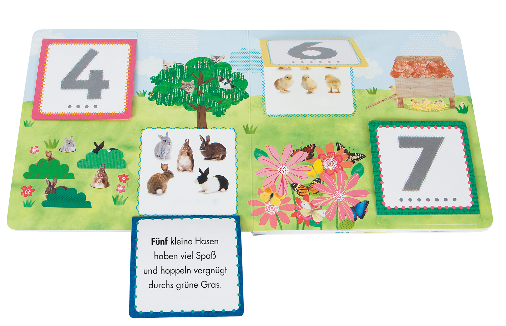 | Schlagworte | Ausklapp-Bilderbuch/Bewegungsbilderbuch • Ausklapp-Bilderbuch/Bewegungsbilderbuch (unzerr.) • Klappen • Papp-Bilderbuch • Raten • Reime • Zahl; Bilderbuch • Zahl; Bilderbuch (unzerr.) • Zahl / Ziffer; Bilderbuch |