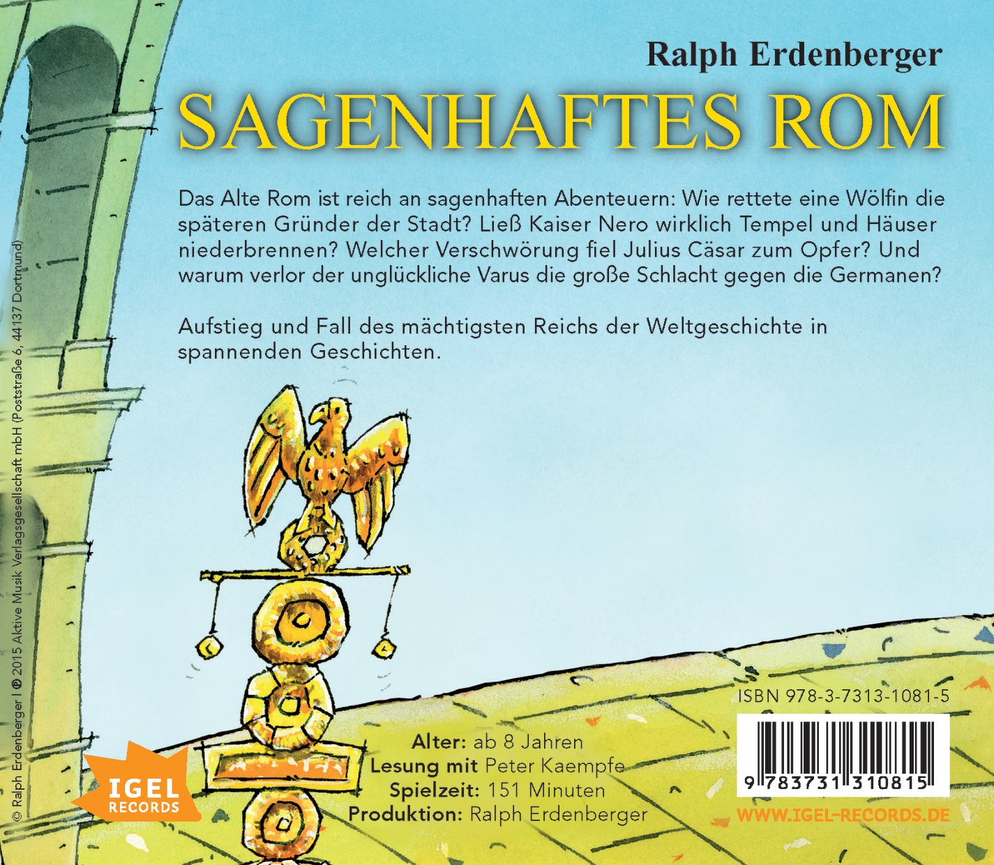 | Schlagworte | Altes Rom • Antike • Armee • Caesar • Cäsar Rubikon • Eroberung • Fall • für Kinder • Geschichte • Gladiatoren • Gründung • Hannibal Elefanten • Hörbuch; Lesung für Kinder/Jugendliche • Imperium • Kaiser Nero • Legende • Lesung • Letzter Kaiser • Martinus Mantel • Mythologie • Rom • Römer • Römische Literatur; Sagen • Römisches Reich • Rom (Römisches Reich); Kinder-/Jugendlit. • Rom (Römisches Reich); Kinder-/Jugendliteratur • Romulus Remus • Sabinerinnen • Sagen • Schlacht Cannae • Varus • Varus Schlacht • Weltgeschichte für Kinder • Wölfin |
