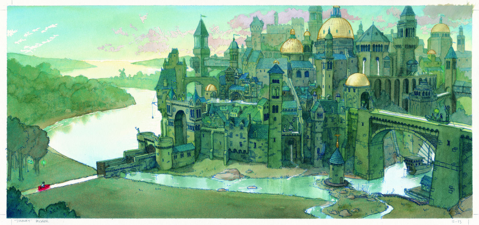 An manchen Tagen kommt einem die Welt trist und langweilig vor. Erst recht, wenn niemand Zeit hat, mit einem zu spielen. Die Protagonistin in Aaron Beckers poetischem Bilderbuch malt daher kurzerhand mit roter Kreide eine Tür an ihre Wand und betritt durch sie eine Welt voller Wunder und Gefahren. Per Boot, Ballon und fliegendem Teppich reist sie auf geheimnisvollen Gewässern, durch Lampion-Wälder und majestätische Städte. Mutig befreit sie sich aus Gefahren, um am Ende glücklich in der Realität zu landen. Ihr kostbares Reisesouvenir: ein Freund, mit dem sie in beiden Welten Abenteuer erleben kann.