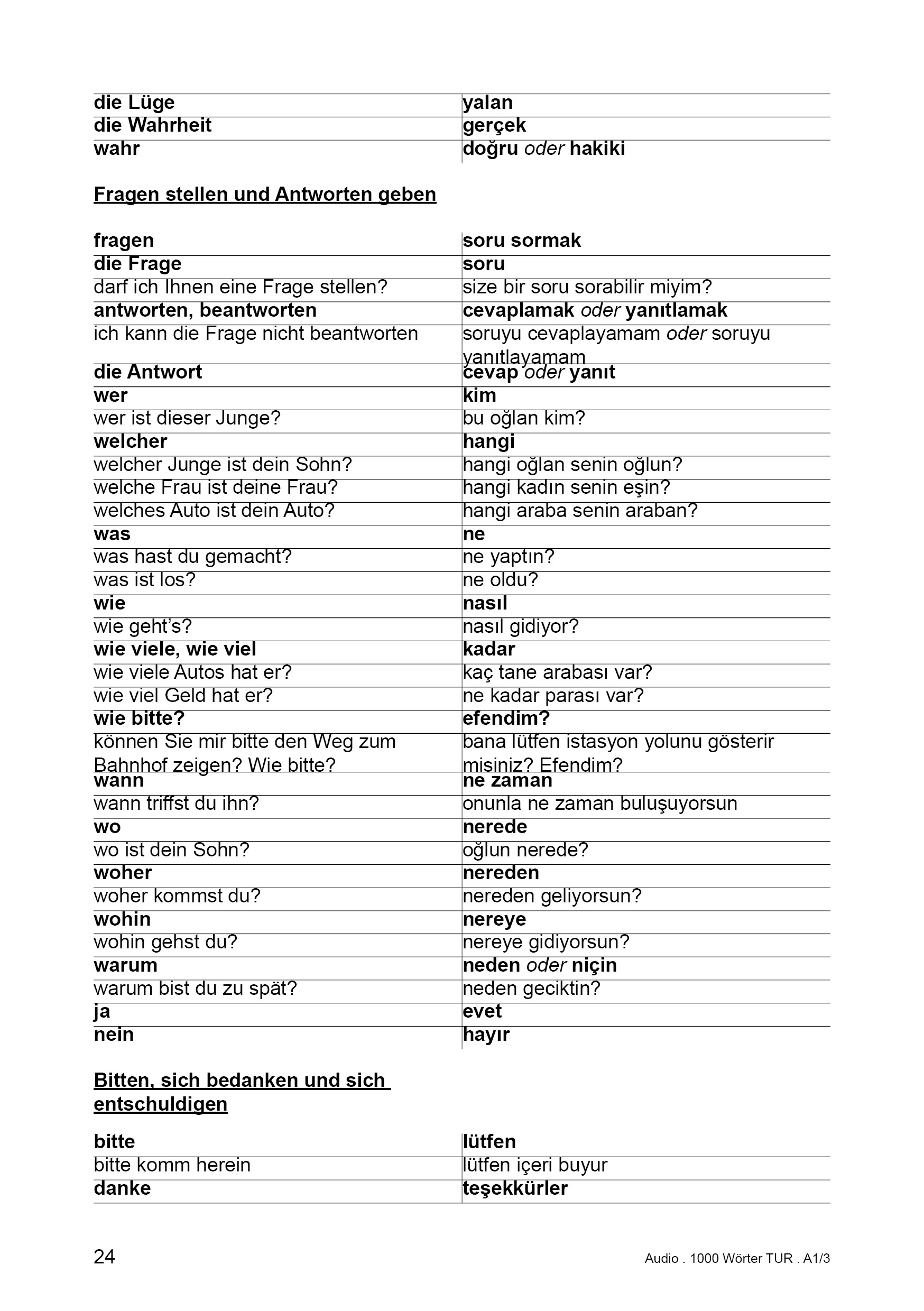 | Schlagworte | 1000 Wörter • Audio-CD • Audiotrainer • Audiotrainer Die wichtigsten 1000 Wörter • Die wichtigsten 1000 Wörter • Hör-CD • Lernhilfe • MP3-Dateien • Türkisch • Türkisch; Wortschatztrainer (A1) • vokabeln lernen • Vokabeltrainer • Wortschatztrainer |