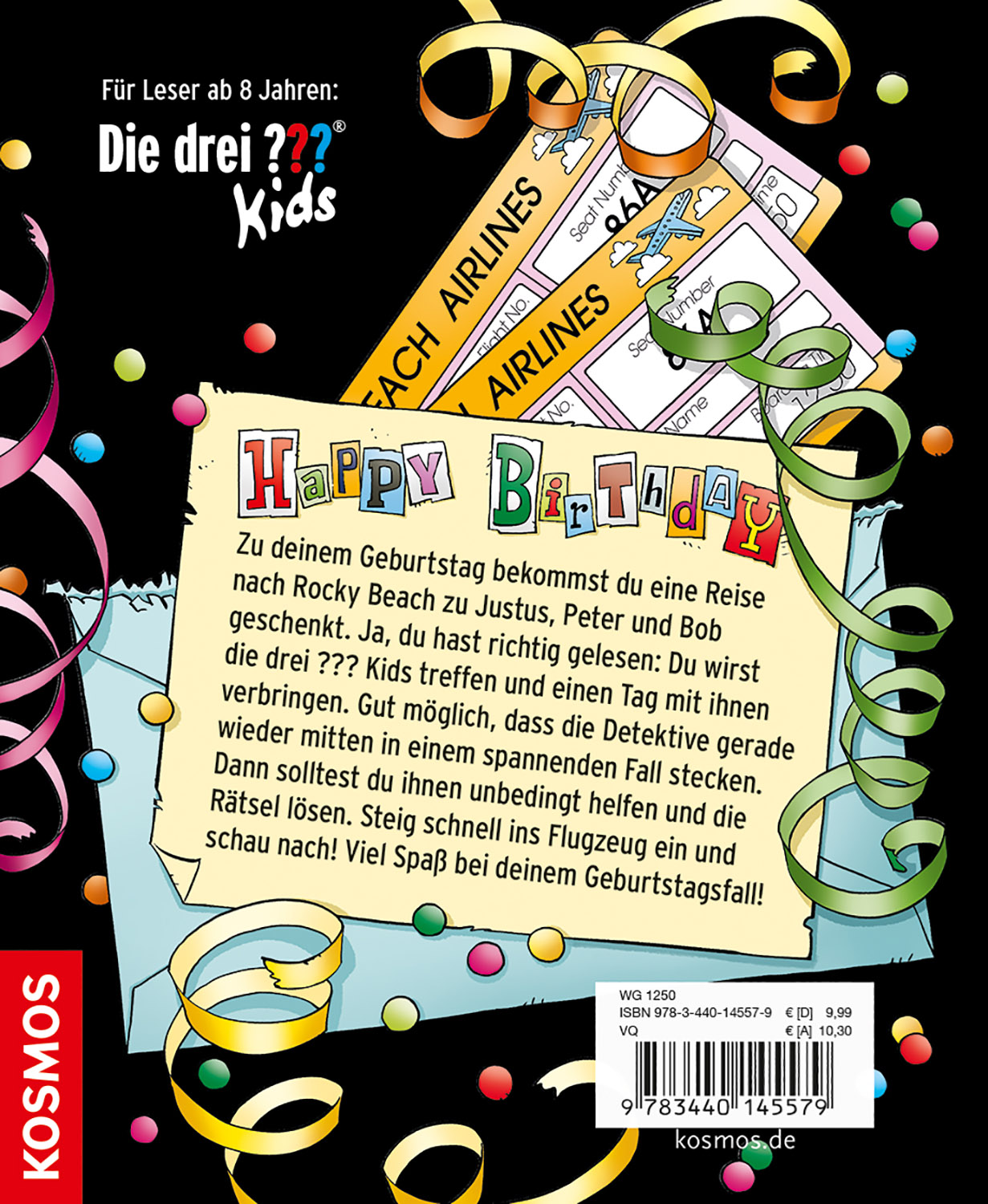"Wer von euch hat sich noch nicht gewünscht, einmal an der Seite von Justus Jonas, Peter Shaw und Bob Andrews zu ermitteln? Beim Lesen dürfen ein Stift und euer Spürsinn nicht fehlen, denn der Fall wird knifflig. Immer werdet ihr mit einbezogen. Beim Eintragen eures Namens auf dem Koffer-Etikett und bei den vielen Rätseln. Wie Geschenke sind alle Buchseiten farbenfroh mit Konfetti, Luftschlangen und witzigen Bildern geschmückt. Geburtstagskinder und Die drei ???-Fans werden diesen Band lieben!" (Norsin Tancik, Marketing-Managerin, München. In: Bücher-Medien-Magazin HITS für KIDS, Print-Ausgabe 44/2015)