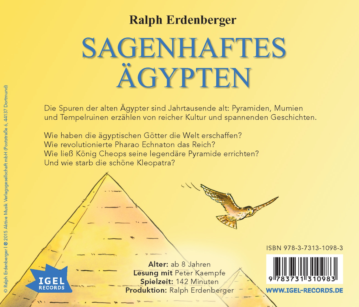 | Schlagworte | Ägypten (Alt-Ä.); Kindersachbuch/Jugendsachbuch • Altes Ägypten • Cheops-Pyramide • Geschichte • GeschichteHistorie • Heliopolis • Hörbuch; Lesung für Kinder/Jugendliche • Kleopatra • könig narmer • Mythologie • Nofretete • Osiris • Pharaonen • Pharaonen; Kindersachbuch/Jugendsachbuch • Pharaonin • Pyramiden • Ramses II • Schlacht Megiddo • Totenbuch |