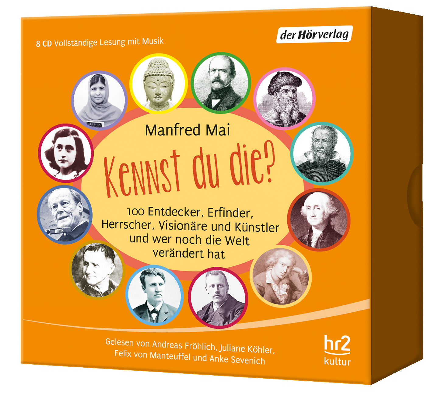 So lebendig kann Geschichte klingen: Manfred Mai erzählt von Entdeckern, Erfindern, religiösen und politischen Anführern, von Philosophen und Künstlern, die mit ihrer Fantasie und ihrem Mut, mit ihren Ideen und Taten die Welt veränderten. Wie haben sie damals gelebt? Was hat sie bewegt? Welche Bedeutung haben sie für uns heute noch? In einhundert Kurzporträts kommen die Großen der Weltgeschichte von Homer über Kleopatra und Mozart bis zu den Beatles und Mark Zuckerberg dem Hörer nahe.(8 CDs, Laufzeit: 9h 38)