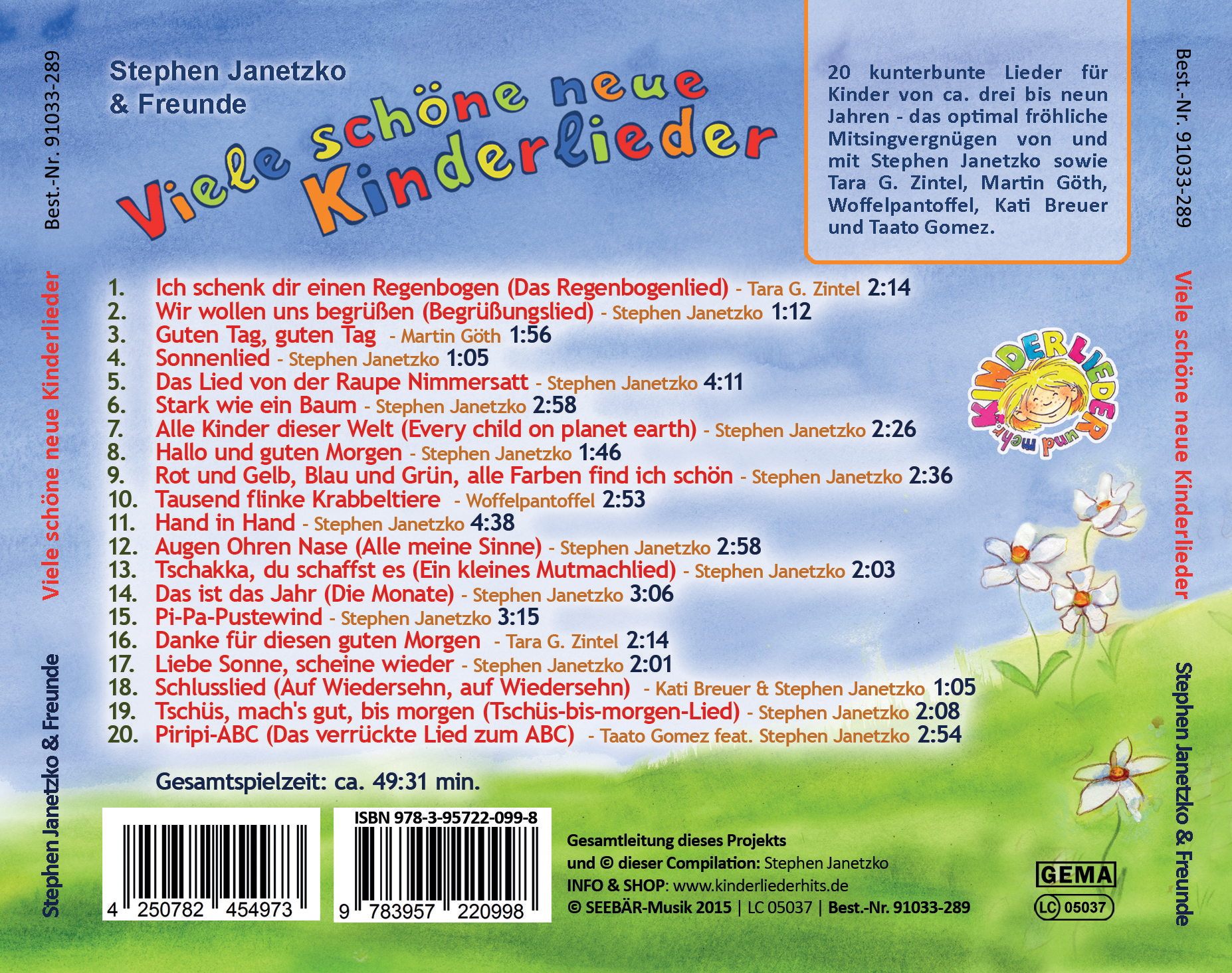 | Schlagworte | Danke • Danke für diesen guten Morgen • Das Lied von der Raupe Nimmersatt • Ich schenk dir einen Regenbogen • Janetzko • Kinderlieder • Raupe Nimmersatt • Regenbogen • Stephen Janetzko & Freunde • Stephen Janetzko & Freunde |