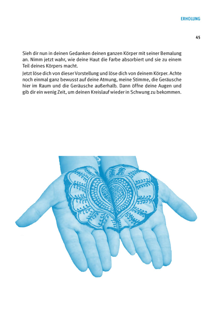 Im Schulalltag und in der Jugendarbeit helfen Fantasiereisen den Schülern, innerhalb weniger Minuten eine mentale und körperliche Auszeit zu nehmen, um danach wieder präsent, vital und aufnahmefähig zu sein. Je regelmäßiger diese Entspannungstechnik geübt wird, desto eher verinnerlichen die Jugendlichen, dass sie körperliche und geistige Entspannung aktiv herbeiführen und damit wieder bei sich selbst ankommen können. 55 Fantasiereisen - jeweils fünf Minuten kurz und damit ideal für den Unterricht -, sowie einleitende und vertiefende Stille-, Wahrnehmungs- und Atemübungen. Auch für Therapie und Erwachsenenarbeit geeignet.