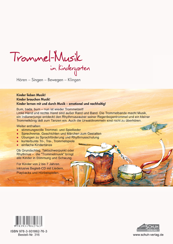 | Schlagworte | Bewegen • Elementare Musikerziehung • Geschichten • Indianer • Instrumente • Kindergarten • Kinderlieder • Kita • Klassik (Klassische Musik); Kindergartenmaterialien • Märchen • Musik • Musikalische Früherziehung • Orff • Singen • Tanzen • Trommel • Trommeln |