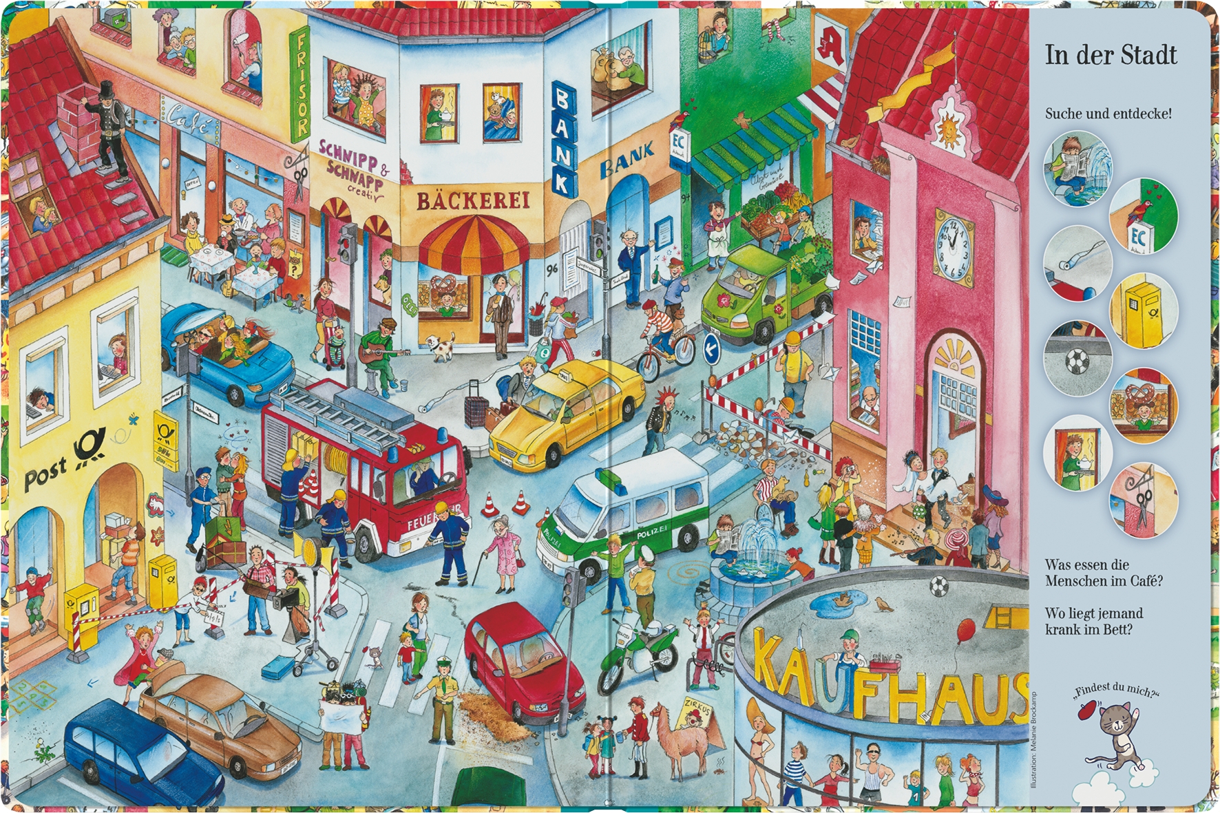 | Schlagworte | Bauernhof • Kasimir • Kater • Märchenwald • Papp-Bilderbuch • Piraten • Stadt • Suchbild; Bilderbuch • Suchbild; Bilderbuch (unzerr.) • Suchbild / Vexierbild; Bilderbuch |