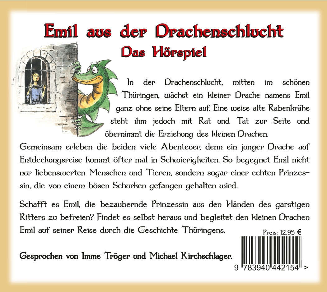 In der Drachenschlucht, mitten im schönen Thüringen, wächst ein kleiner Drache namens Emil ganz ohne seine Eltern auf. Eine weise alte Rabenkrähe steht ihm jedoch mit Rat und Tat zur Seite und übernimmt die Erziehung des kleinen Drachen.