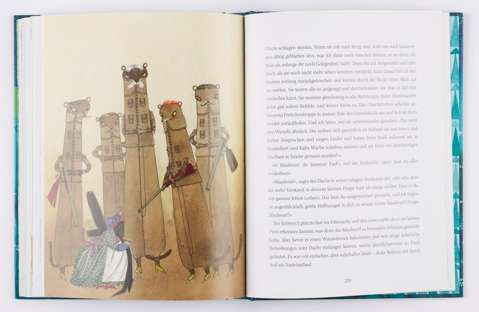 Am Flussufer und im Wildwald jenseits der Weiten Welt leben der grummelige Dachs, der findige Ratterich, der gutmütige Maulwurf und der unverbesserliche Kröterich. Mit den wunderschönen neuen Bildern von David Roberts erobert der hinreißende Kinderbuchklassiker von Kenneth Grahame eine neue Generation von Lesern.