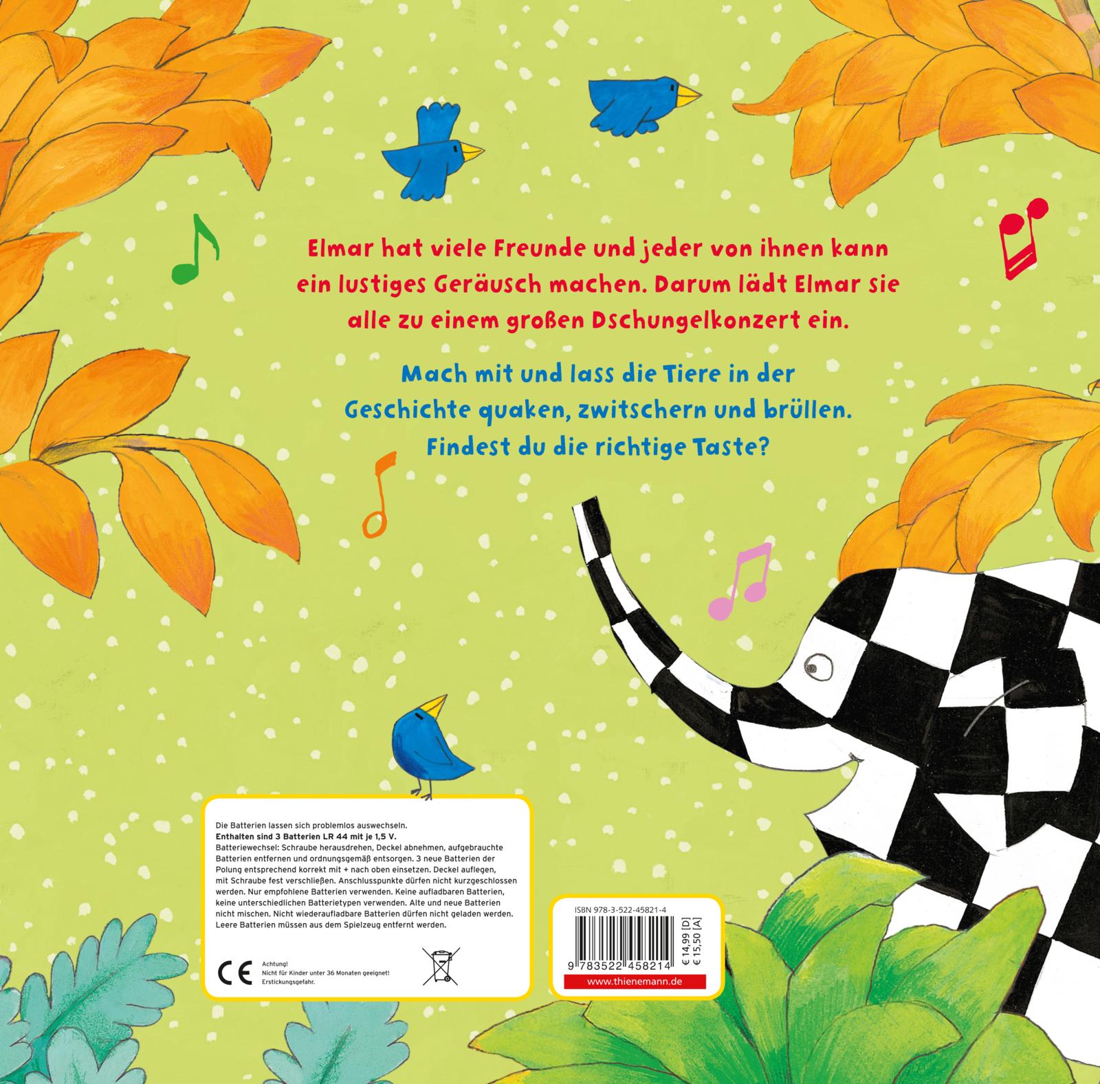 Elmar hat viele Freunde, und jeder von ihnen kann ein lustiges Geräusch machen. Darum lädt Elmar sie alle zu einem großen Dschungelkonzert ein. Das macht Spaß! Mach mit und lass die Tiere in der Geschichte quaken, zwitschern und brüllen. Findest du die richtige Taste?