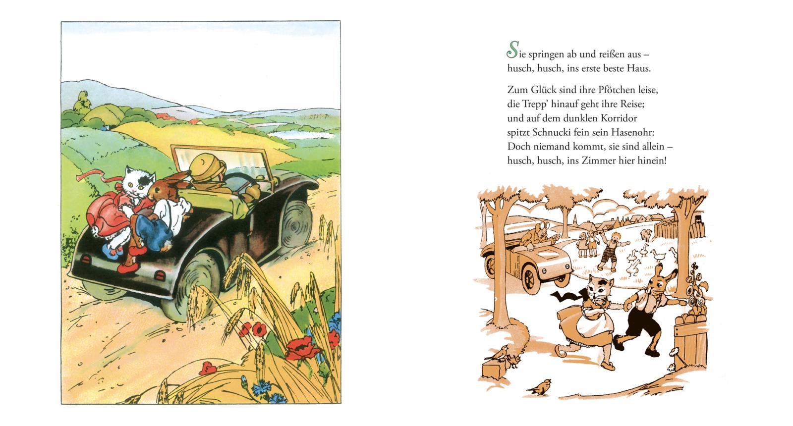 Der Hasenjunge Schnuckihas und das Katzenmädchen Miezemau wollen "Stadtluft schnuppern" und reisen als blinde Passagiere in die weite Welt. Unbemerkt schlüpfen sie durch die Tür eines Kinderzimmers, in dem es die tollsten Spielsachen gibt. Ob die beiden Ausreißer wieder nach Hause kommen, bevor es dunkel wird? Die Versgeschichte über dieses lustige Gespann, erstmals in den 1920er Jahren erschienen, ist eine echte Entdeckung für kleine und große Bilderbuch-Liebhaber!