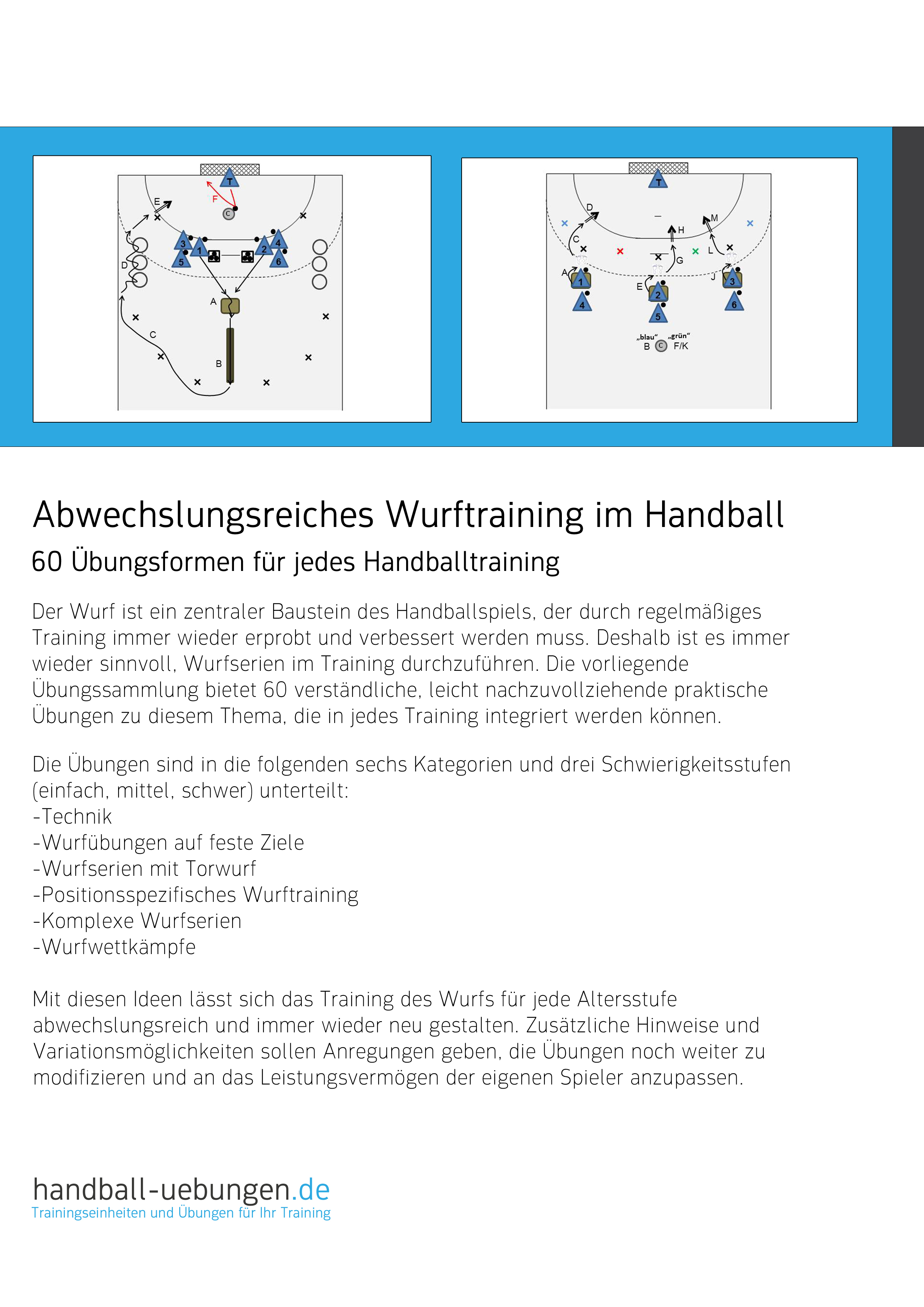 Mit diesen Ideen lässt sich das Training des Wurfs für jede Altersstufe abwechslungsreich und immer wieder neu gestalten. Zusätzliche Hinweise und Variationsmöglichkeiten sollen Anregungen geben, die Übungen noch weiter zu modifizieren und an das Leistungsvermögen der eigenen Spieler anzupassen.