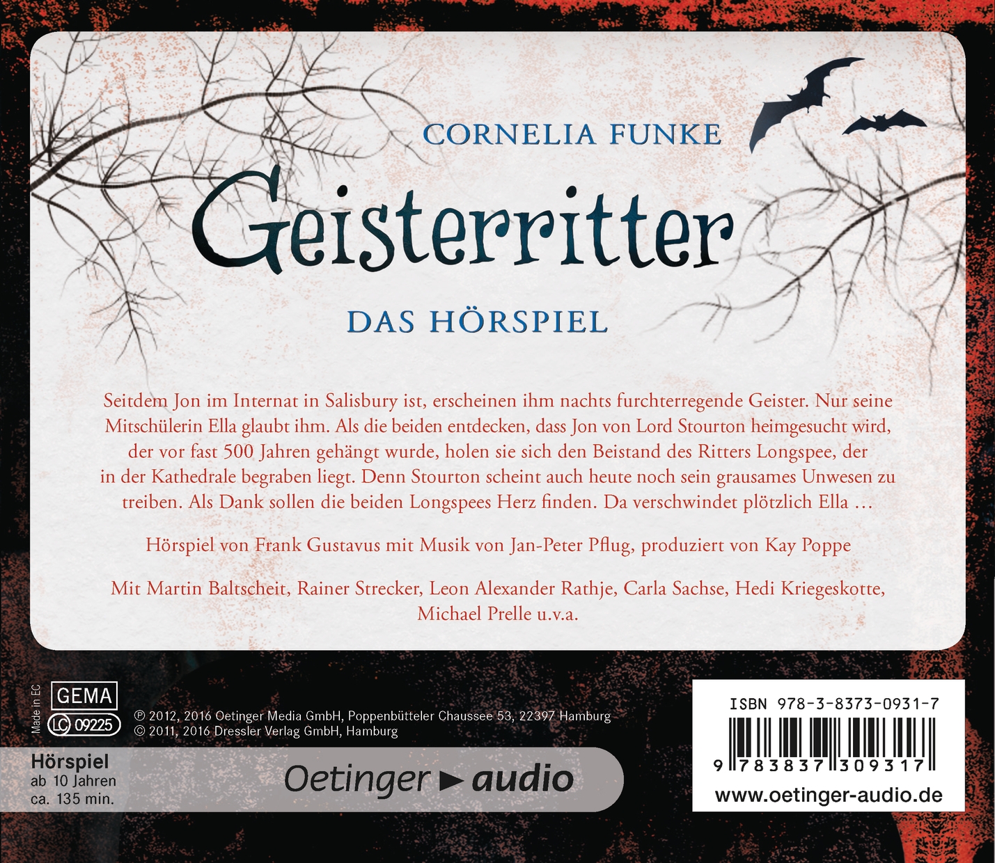 | Schlagworte | Abenteuer • Abenteuer; Kinder-/Jugendliteratur • Bestsellerautorin • Cornelia Funke • England • Familienfluch • fantastisch • Freundschaft • Geister • GeisterGespensterUngeheuer • Geisterglaube • Gespenst • Gespenster • gruselig • Hilfe • Hörbuch; Lesung für Kinder/Jugendliche • Internat • Junge • Kinderbuch • Kinderbuch ab 10 • Kinderhörspiel • Mitschülerin • Rache • Ritter • Ritter; Kinder-/Jugendliteratur • Salisbury • Spannung • Stiefvater |
