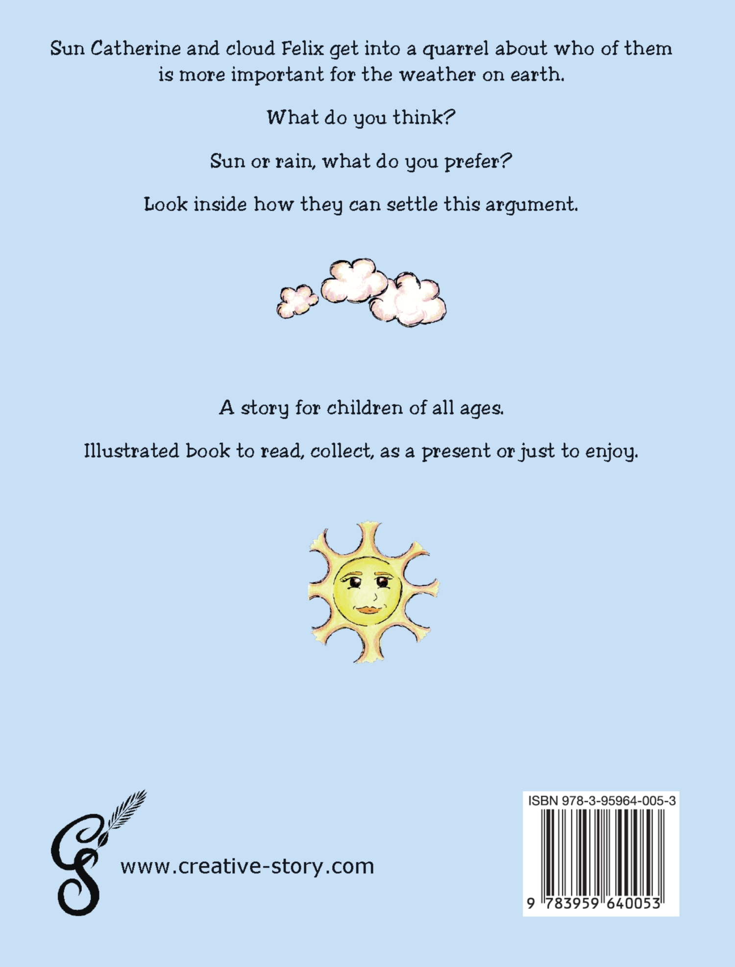 Sun Catherine and cloud Felix get into a quarrel about who of them is more important for the weather on earth.