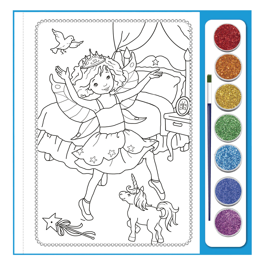 Regenbogen Glitzer-Ausmalbuch mit Tuschkasten "Fee Flora"