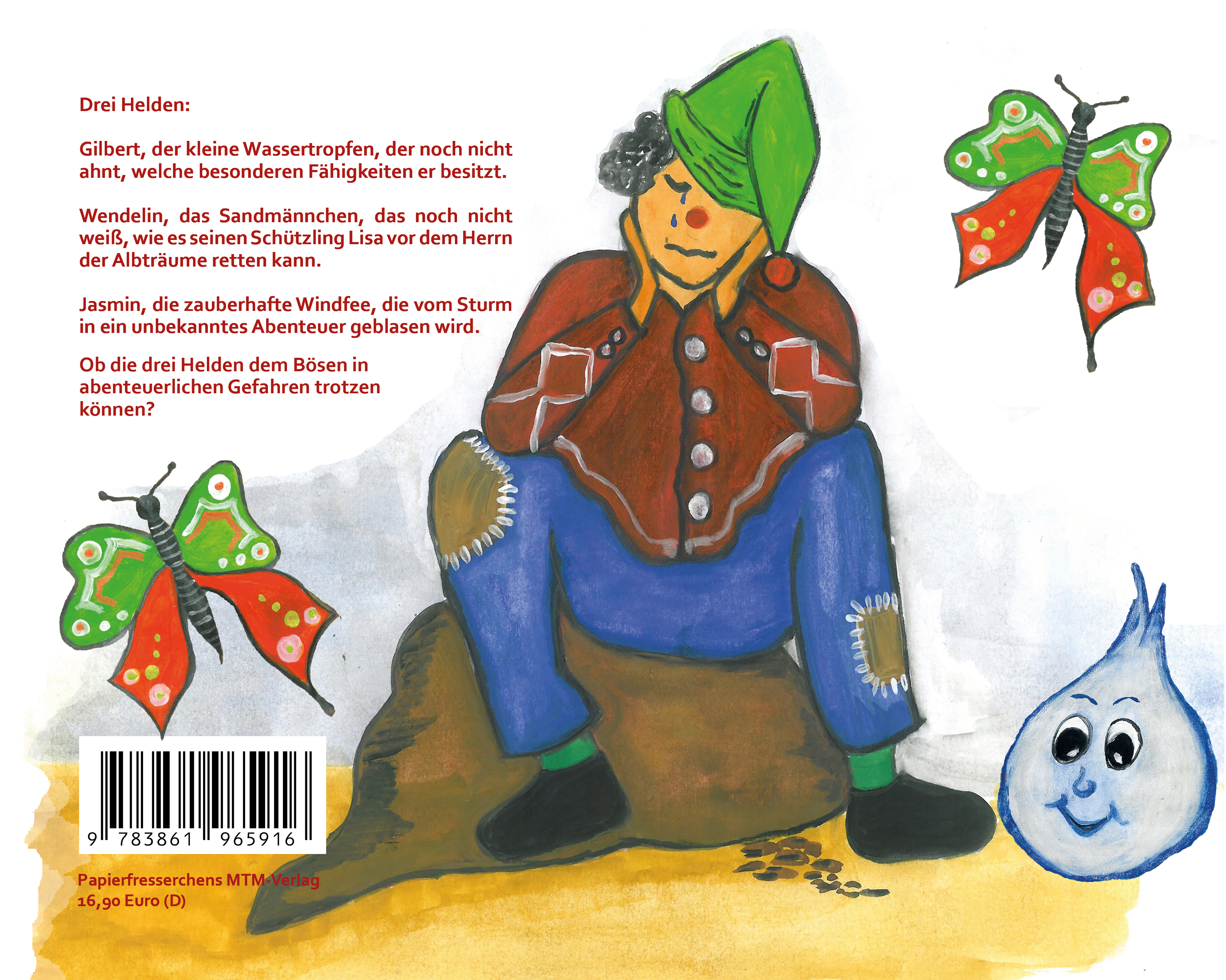 Drei Helden: Gilbert, der kleine Wassertropfen, der noch nicht ahnt, welche besonderen Fähigkeiten er besitzt. Wendelin, das Sandmännchen, das noch nicht weiß, wie es seinen Schützling Lisa vor dem Herrn der Albträume retten kann.Jasmin, die zauberhafte Windfee, die vom Sturm in ein unbekanntes Abenteuer geblasen wird. Ob die drei Helden dem Bösen in abenteuerlichen Gefahren trotzen können?