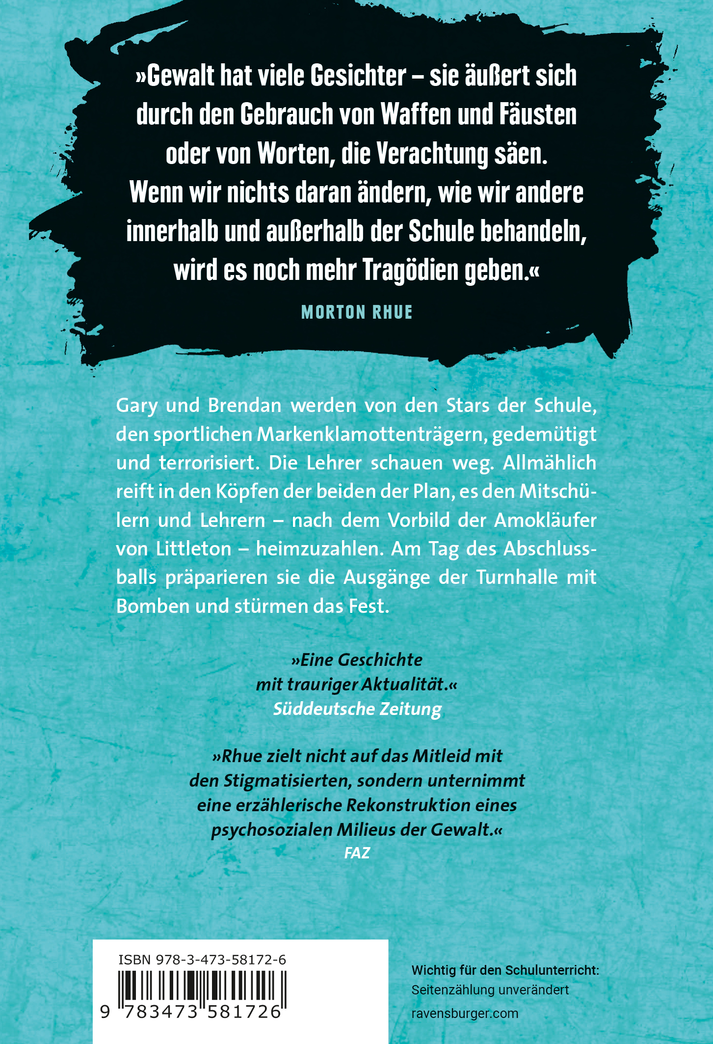 "Rhue schafft eine Atmosphäre beklemmender Authentizität. Denn die meisten Sätze klingen irgendwie sehr bekannt, wie schon einmal gehört, wenn nicht selbst ausgesprochen. Morton Rhue macht ein Angebot. Es ist eine Einladung an alle Schüler und Lehrer, aber auch an alle Eltern, die Antworten suchen."
