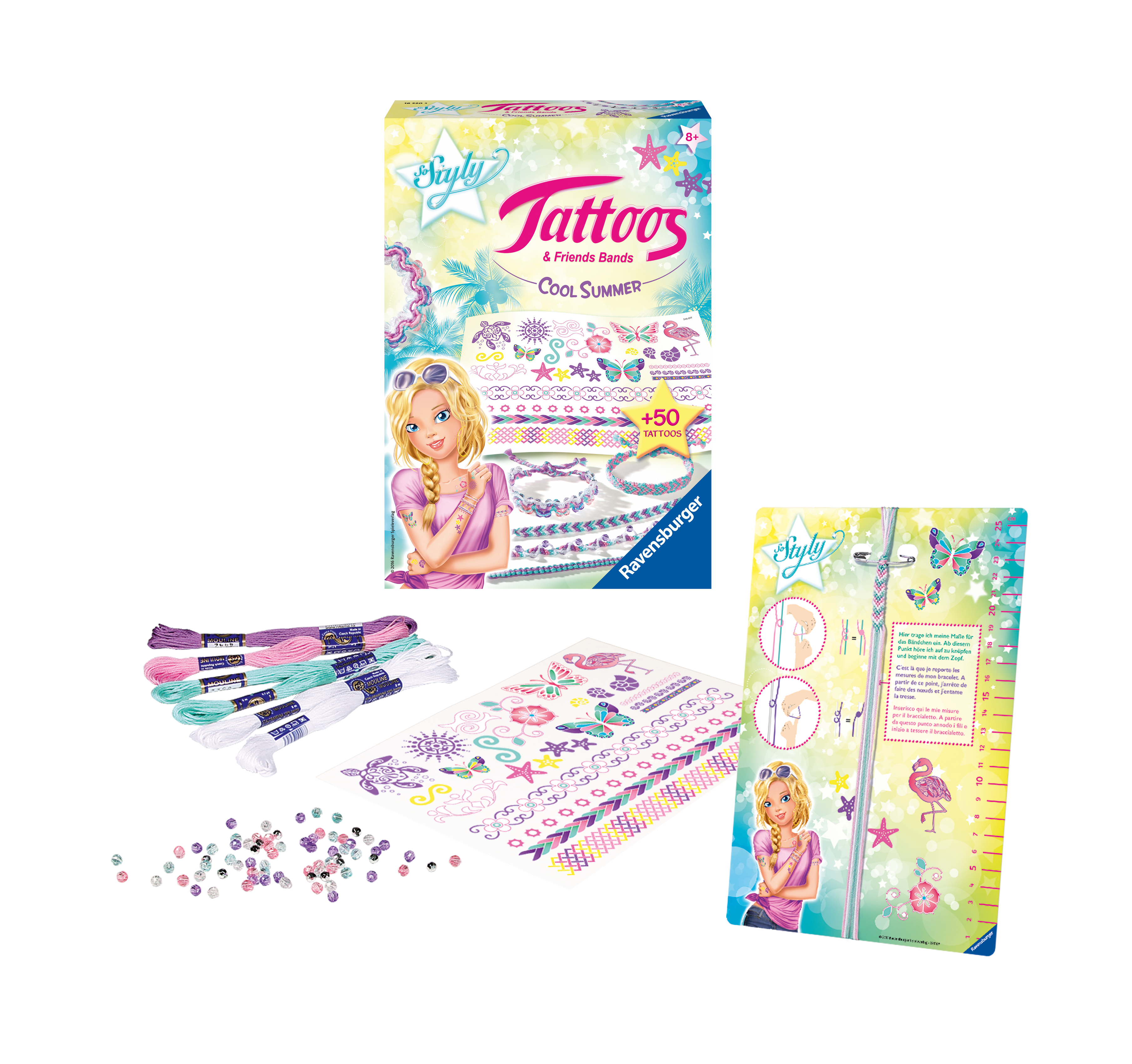 Tattoos & Friendsbands: Cool Summer. Mit diesem Komplettset von Ravensburger haben Kinder ab 8 Jahren eine Auswahl an 50 verschiedenen Transparent-Tattoos.