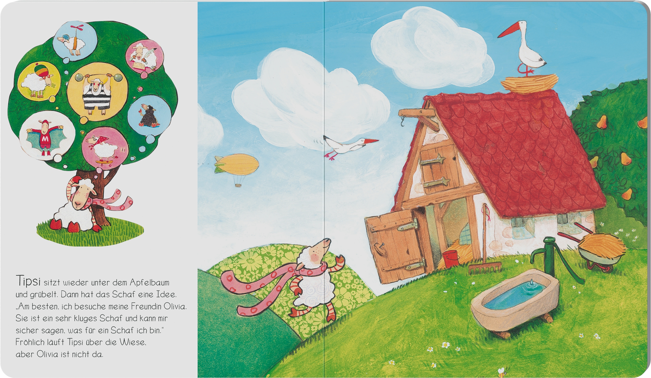 Alle Schafe auf Tipsis Wiese sind besondere Schafe, denn jedes Schaf kann etwas anderes richtig gut. Aber was kann Tipsi? Das kleine Schaf ist weder mutig noch stark und auch als Glücksbringer nicht wirklich geeignet. Tipsi ist ratlos. Doch die kluge Olivia weiß genau, was Tipsi besser kann als alle anderen Schafe: nämlich wunderbar trösten!