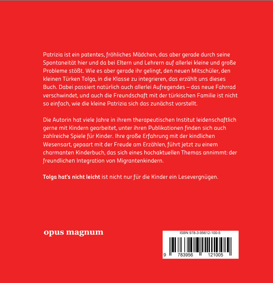 Patrizia ist ein patentes, fröhliches Mädchen, das aber gerade durch seine Spontaneität hier und da bei Eltern und Lehrern auf allerlei kleine und große Probleme stößt. Wie es aber gerade ihr gelingt, den neuen Mitschüler, den kleinen Türken Tolga, in die Klasse zu integrieren, das erzählt uns diesesBuch.
