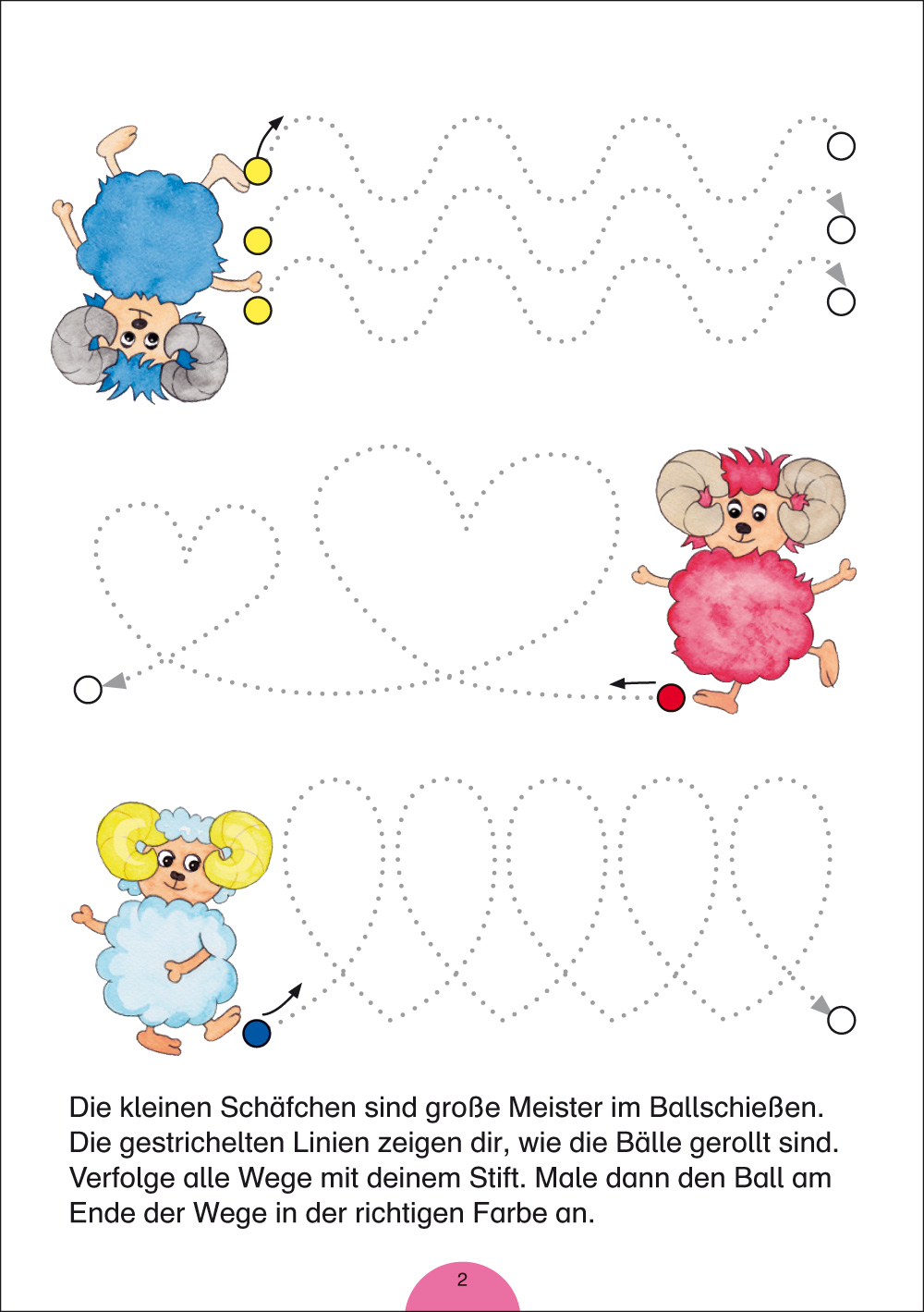 Die abwechslungsreichen und anschaulichen Aufgaben für angehende Schulkinder trainieren alle erforderlichen Grundkompetenzen.