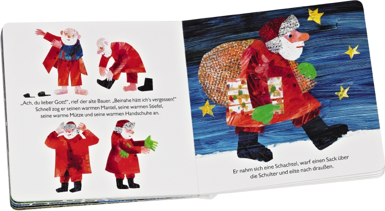 In einem handlichen Pappbilderbuch mit zahlreichen Klappen erzählt Eric Carle seine zutiefst menschliche und tierfreundliche Weihnachtsgeschichte.