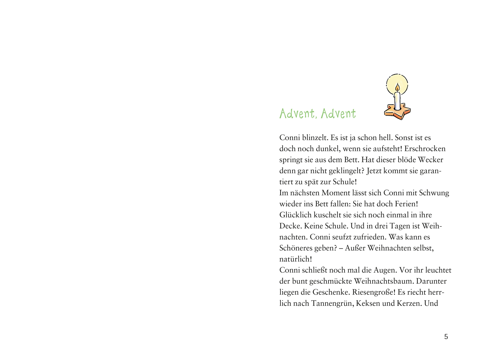 Nur noch wenige Tage bis Heiligabend. Conni freut sich schon auf Weihnachten. Doch bei Familie Klawitter herrscht nicht gerade Weihnachtsstimmung: Alles geht schief! Nichts läuft so, wie geplant! Aber dann stellt Conni fest, dass so ein ganz spezielles Weihnachtsfest auch sehr schön sein kann.