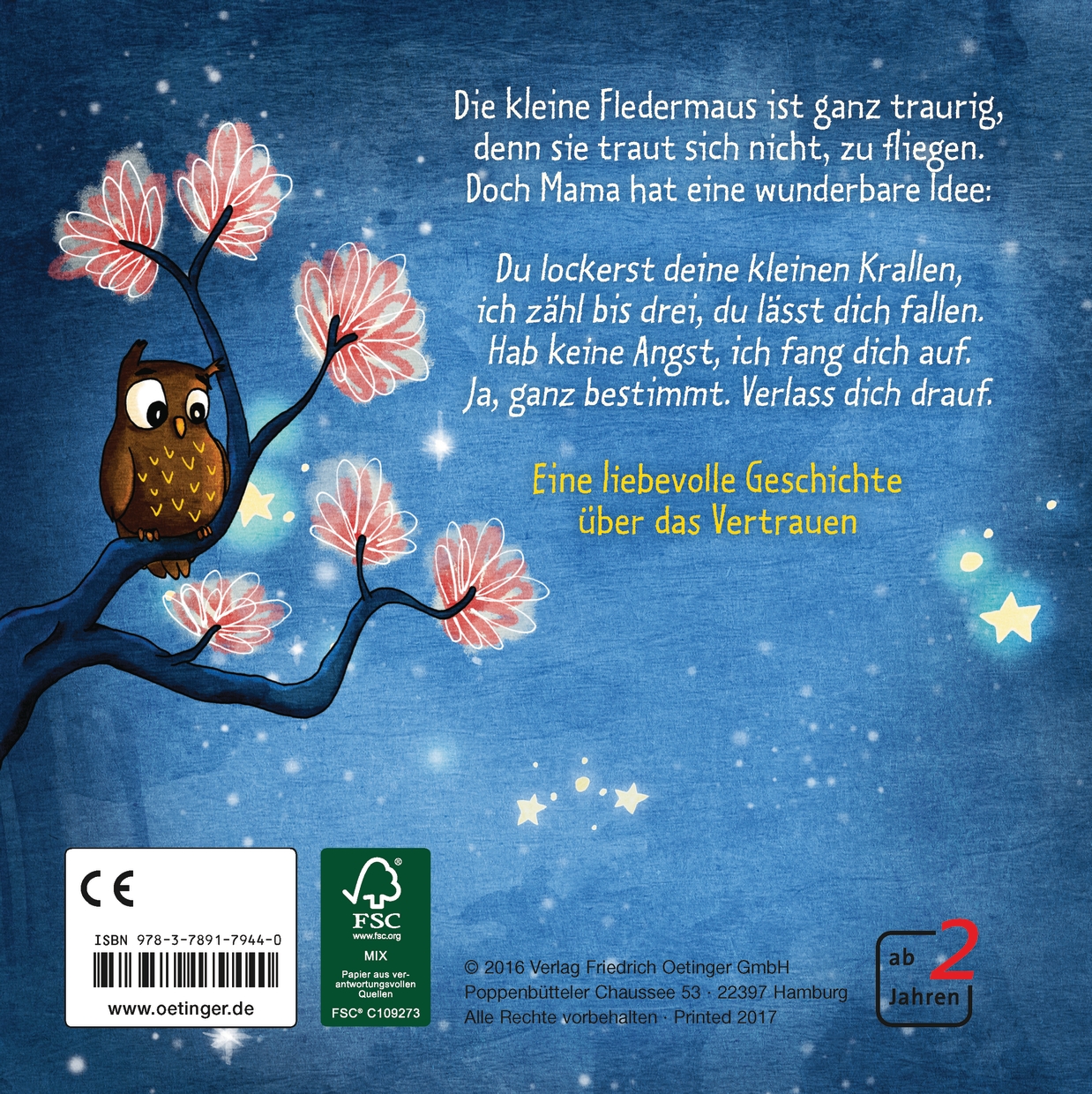 "'Trau dich, kleine Fledermaus!' ist ein herziges und schönes Pappbilderbuch für Kleinkinder ab zwei Jahren. Einfühlsam und altersgerecht erklärt es ihnen, dass manche Dinge Mut erfordern, aber die Eltern immer da sind, um einen beim Bewältigen neuer Herausforderungen zur Seite stehen oder im Notfall auch einzgreifen. Ein tolles Buch, das Mut macht und Ängste nimmt." janetts-meinung.de, 22.07.2016