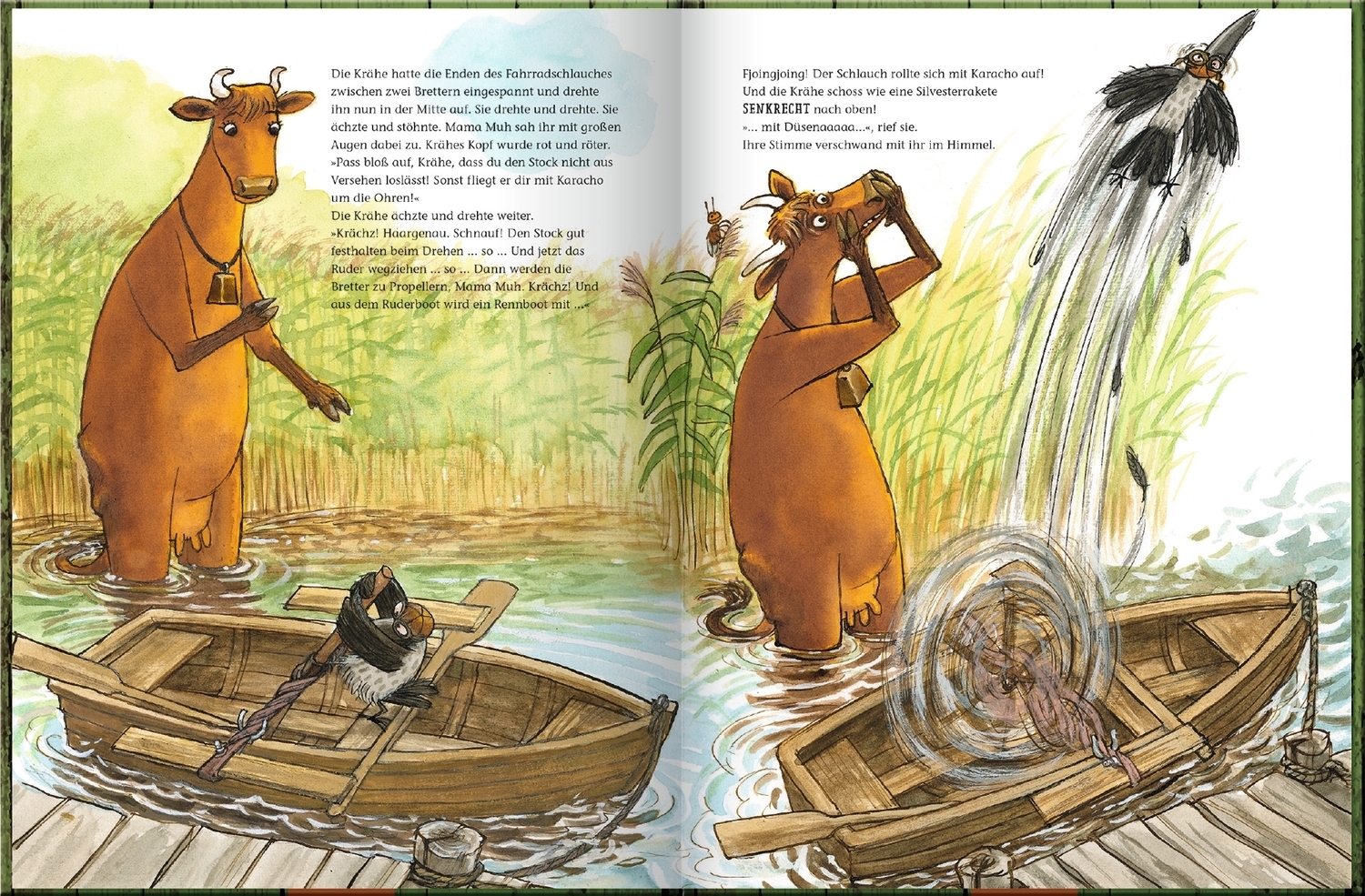 lt;p>Ein ruhiger Sommertag und am See mit Booten spielen? Viel zu öde für die Krähe aus Jujja Wieslanders und Sven Nordqvists Bilderbuch "Mama Muh fährt Boot"! Sie will ein Rennboot. Also schnappt sie sich das Ruderboot des Bauern, befestigt daran Mama Muhs Fahrradschlauch als Propeller - und schon soll es losgehen! Doch was dann tatsächlich losgeht, ist für alle ganz schön überraschend.