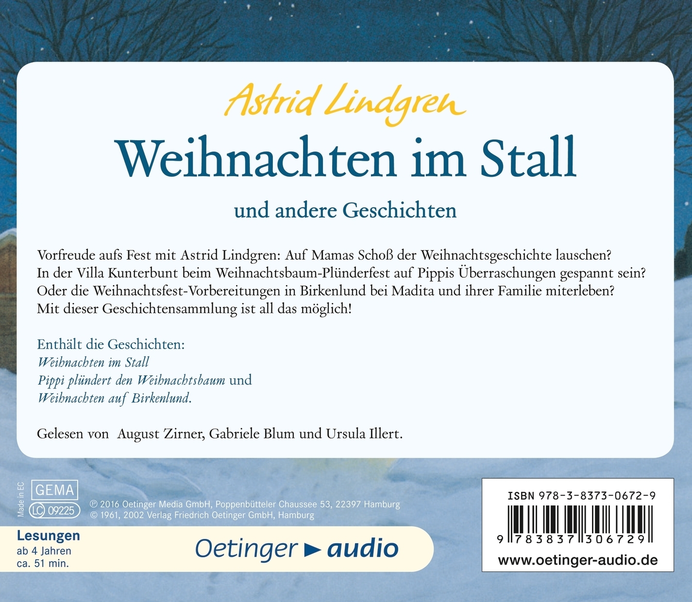 | Schlagworte | Adventszeit • Bibel • Birkenlund • Familie • Geburt Jesus • Hörbuch; Lesung für Kinder/Jugendliche • Kinderbuch ab 4 • Kinder, Jugendliche und Bildung • Klassiker • Madita • Maria und Josef • Pippi Langstrumpf • Schweden • Skandinavien • Tannenbaum • Weihnachten • Weihnachten; Kinder-/Jugendlit. • Weihnachtsgeschichte • Weihnachts-Klassiker • Weihnachtszeit • Winter |