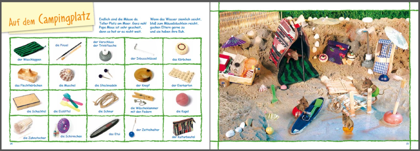 Wenn Familie Maus auf Reisen geht, dann gibt's Erstaunliches zu entdecken - oft erst auf den zweiten Blick. Ist das Zelt nicht ein Kulturbeutel oder das Auto gar ein Kinderschuh? Ob beim Arzt oder auf dem Rummelplatz, bei Familie Maus ist immer viel los und die Alltagsgegenstände sind aufs Fantasievollste zusammengeklaut.
