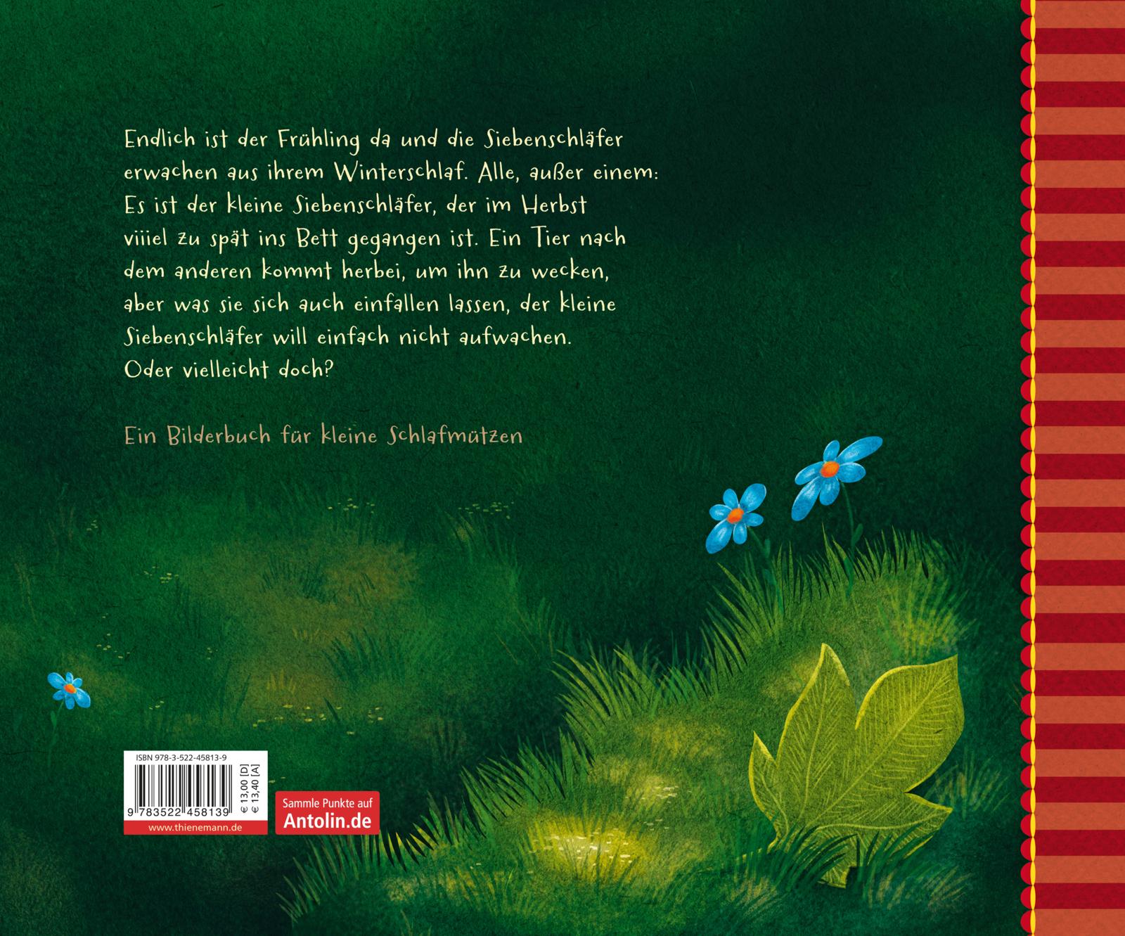 Endlich ist der Frühling da und die Siebenschläfer erwachen aus ihrem Winterschlaf. Alle, außer einem: Es ist der kleine Siebenschläfer, der im Herbst viel zu spät ins Bett gegangen ist, und deshalb noch ganz tief schläft. Ein Tier nach dem anderen kommt herbei, um ihn zu wecken, aber was sie sich auch einfallen lassen, der kleine Siebenschläfer will einfach nicht aufwachen. Oder vielleicht doch?