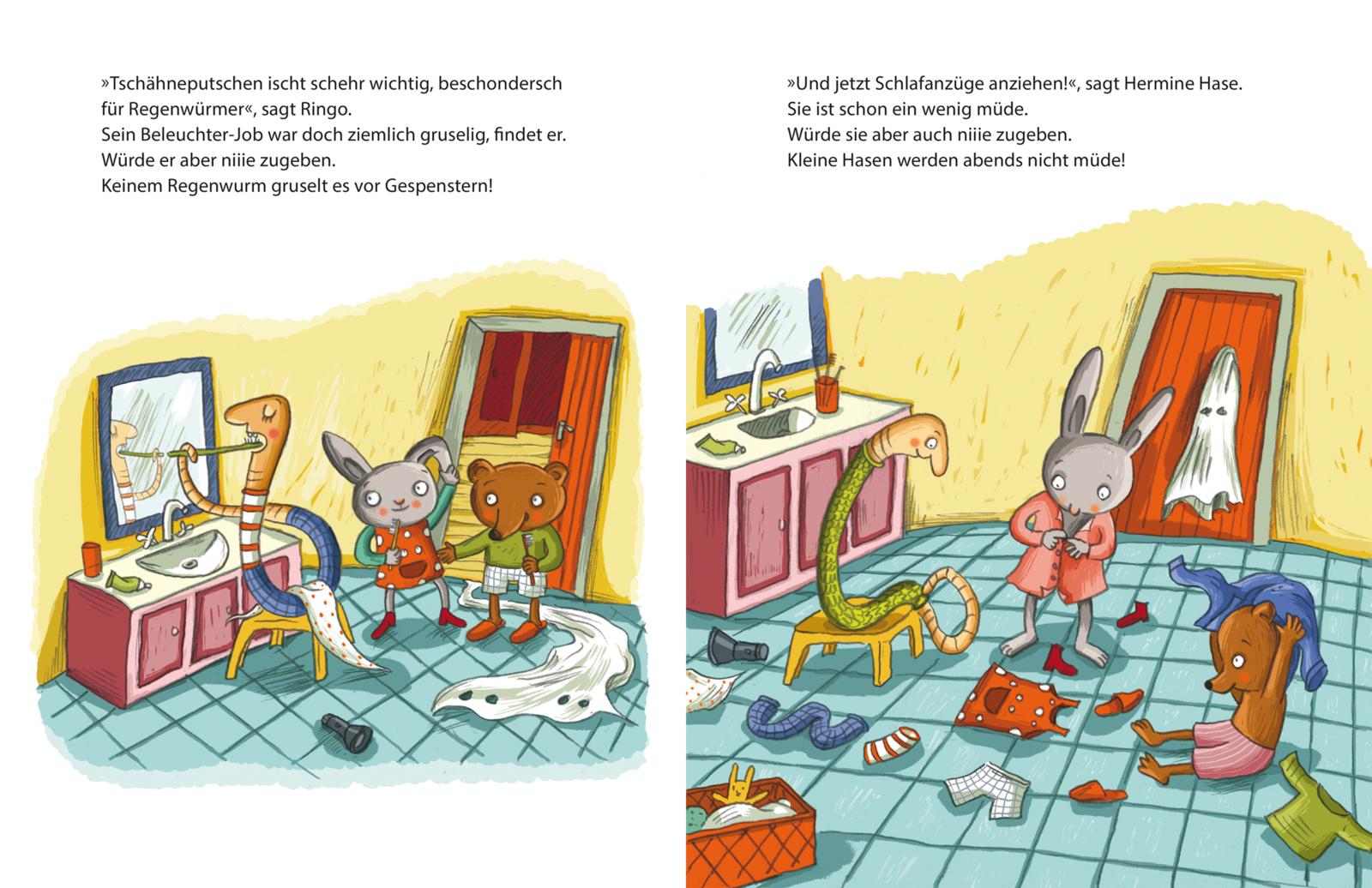 lt;p>Juhu! Hermine Hase und Ringo Regenwurm übernachten heute bei Baldo Bär. Denn das ist noch viel schöner als allein daheim. Und zusammen ist es auch nur halb so schlimm, wenn sich einer im Dunkeln ein bisschen gruselt ...