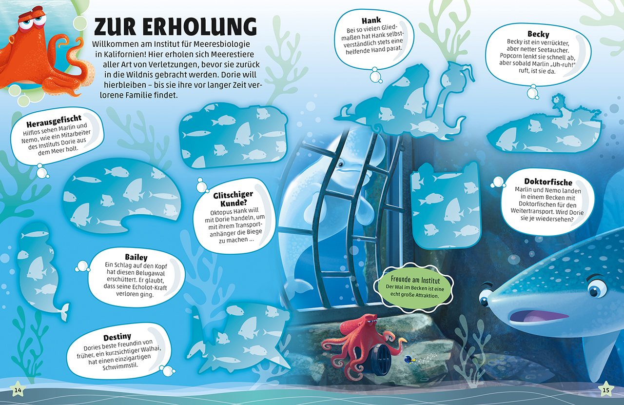 Alles über die aufregenden Abenteuer von Dorie, Nemo und Marlin in einem Stickerbuch! Hier können Fans die faszinierende Unterwasserwelt des Ozeans und viele lustige Meeresbewohner kennenlernen.