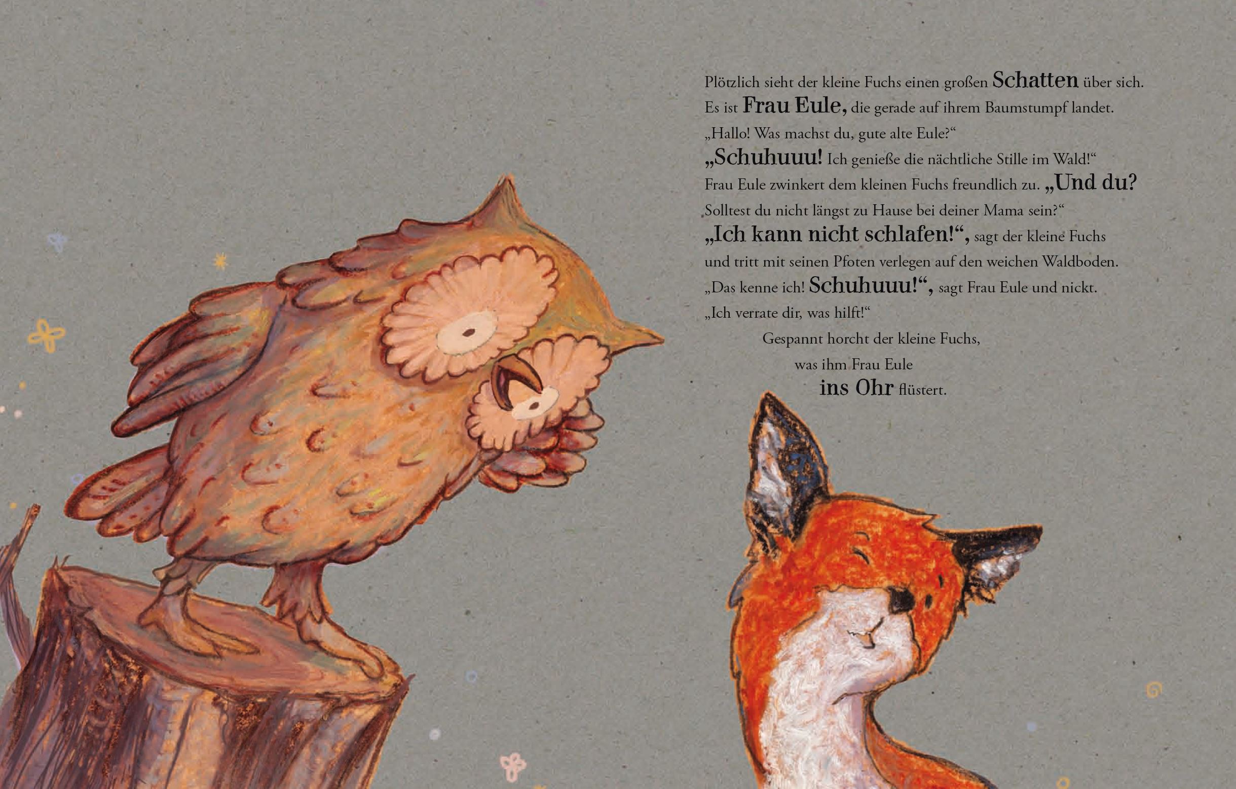 | Schlagworte | Bilderbücher (Kinder) • Einschlafbuch • Einschlafen • Einschlafen; Bilderbuch • Eule • Fledermaus • Fuchs; Bilderbuch • Gute-Nacht-Geschichte • Schlaf • schlafen gehen • Träumen |