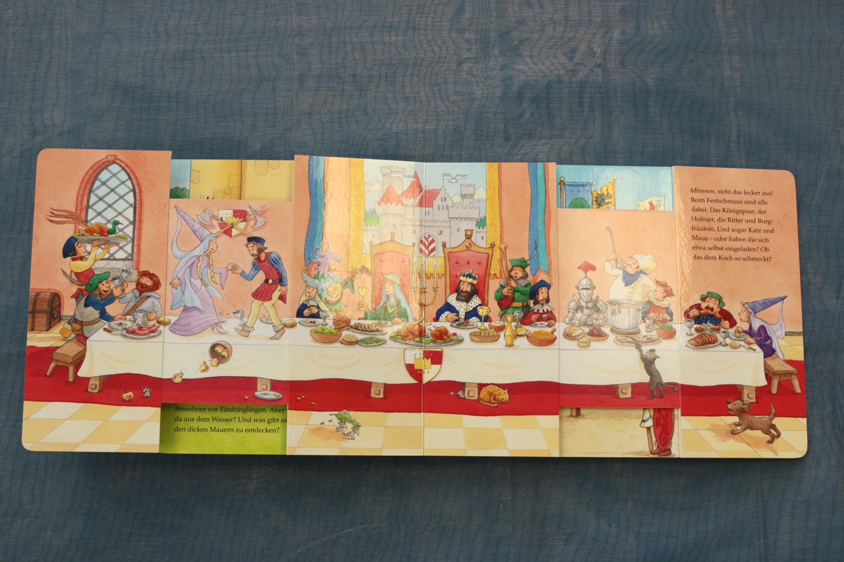 Komm mit in eine andere Zeit, auf Burgen und die höchsten Türme. Ich stelle dir den König vor, Pferde, Gaukler und ein Burgfräulein. Zieh meine Seiten lang und schau, wo die Gespenster spuken, wie die Ritter schmausen und tanzen ... und wer sich sonst noch so versteckt!