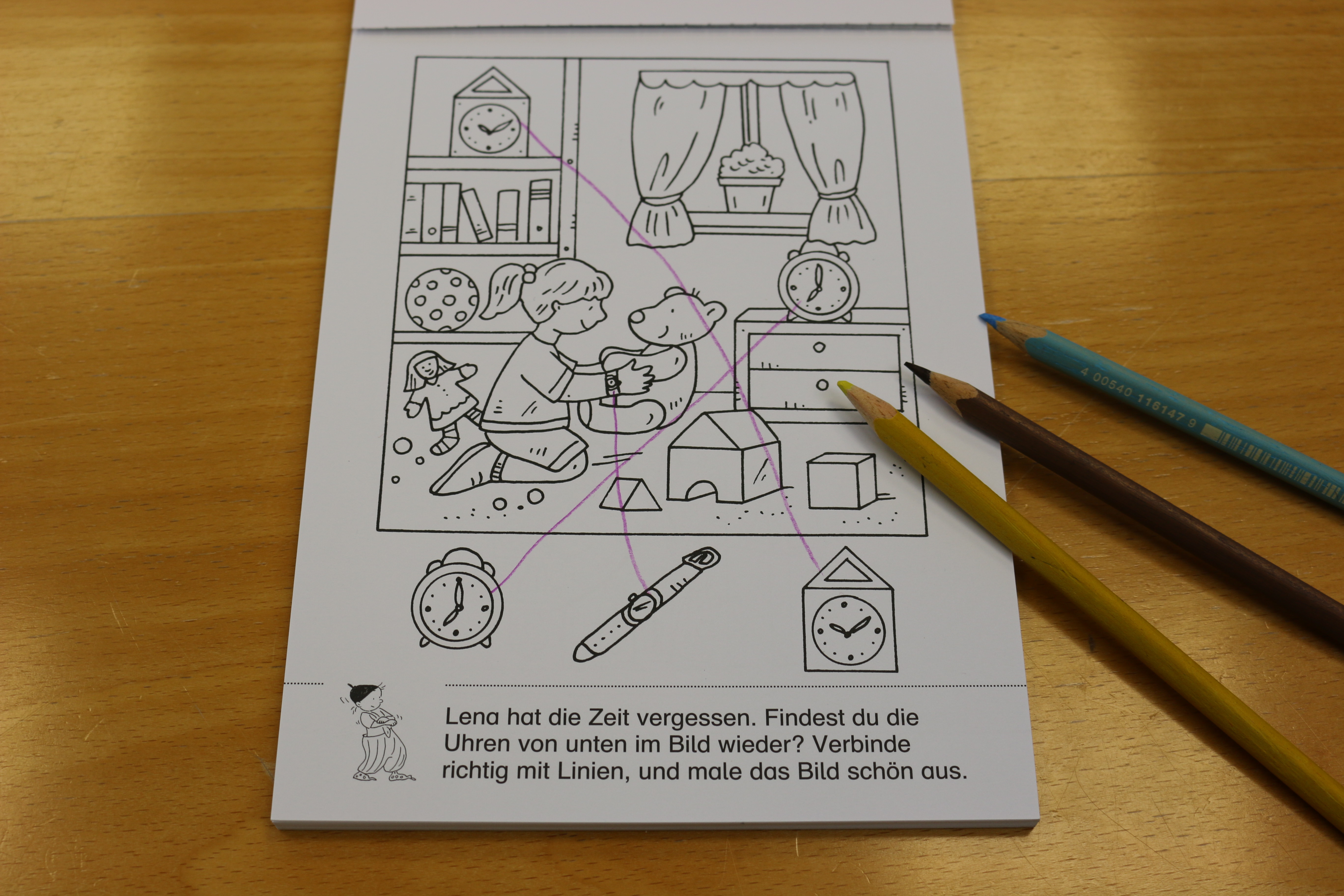 Abwechslungsreiche Rätsel und Übungen für Kinder ab 5 Jahren rund um die Themen Uhrzeit und Zeit. Zum spielerischen Lernen in der Vorschule.